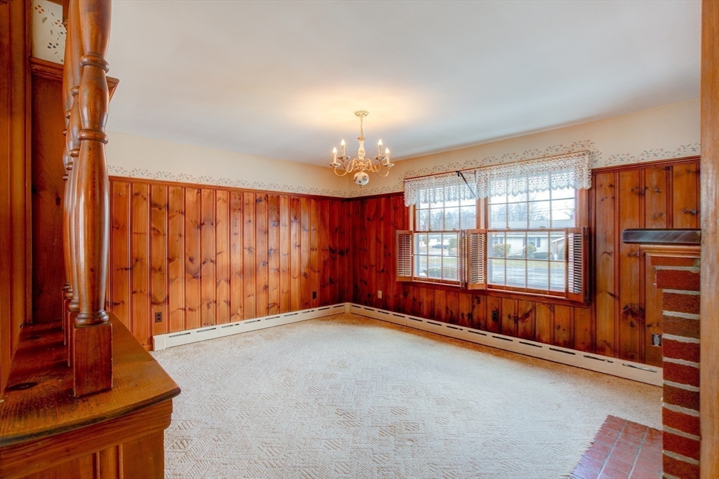 Solid 2-bedroom ranch, loved by the same family for 32 years, offering easy single-level living with an attached 1-car garage. Bright living room with hardwood floors, bow window with plantation blinds, built-ins, and double-sided fireplace opens to the dining room. Kitchen with dining area flows to a large sunroom and garage. Down the hallway two bedrooms, including main with cedar-lined window seat and two closets, 1½ baths. Original charm remains with cast-iron baseboards, plaster walls/ceilings, decorative trim. Updates: Vinyl replacement windows and gutters. Basement has separate zone for heat and provides bonus space for hobbies or storage. On .34 acres just minutes from Route 2, this home is ready for updates and your personal touch—perfect for first-time buyers or downsizers seeking low-maintenance living.