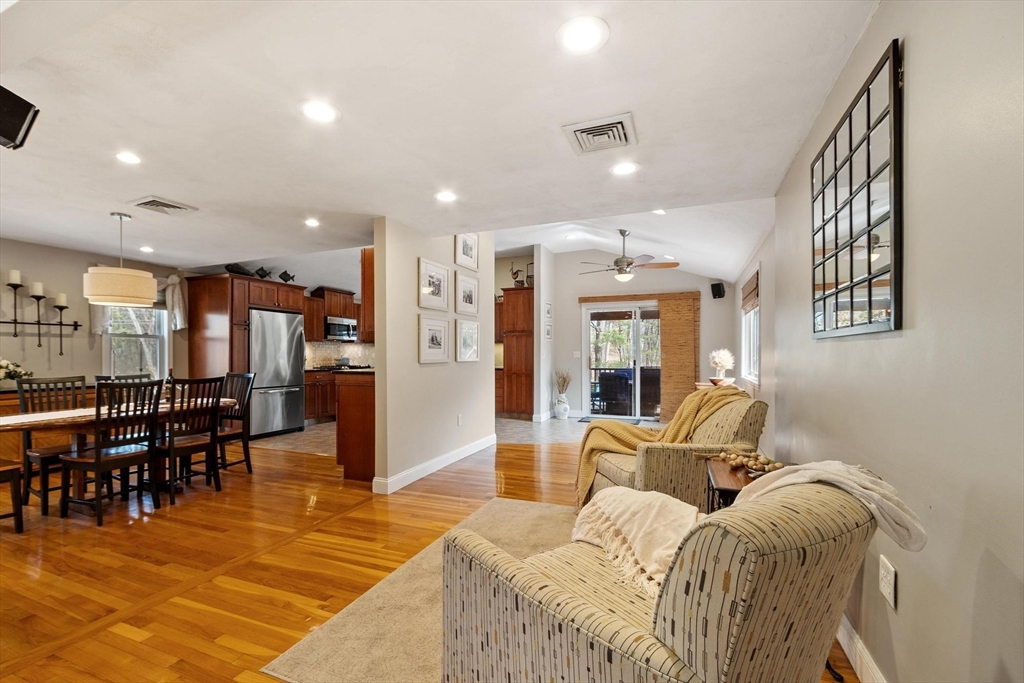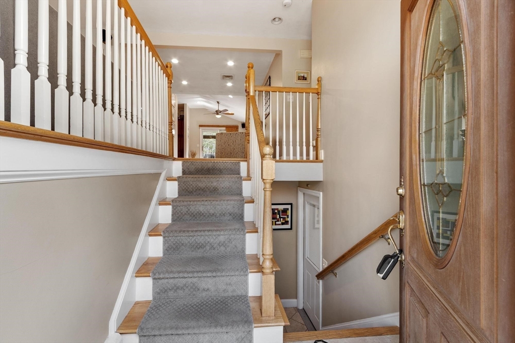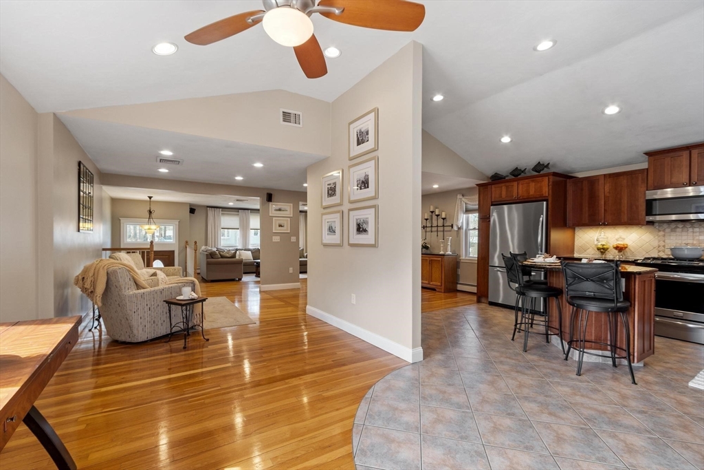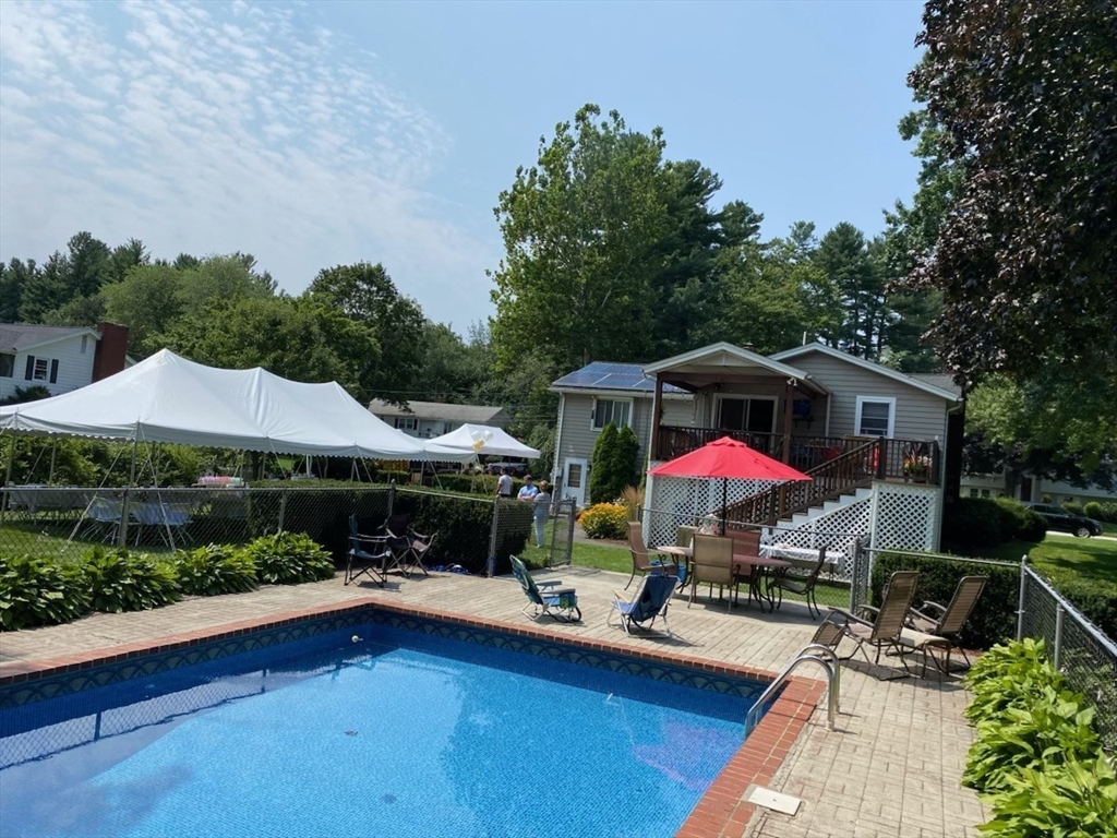 Sprawling, oversized Raised Ranch on a beautifully landscaped lot in a sought-after neighborhood! This stylish and inviting home offers exceptional indoor and outdoor living space. The in-ground pool and expansive deck overlook a private, fenced-in backyard, creating a true outdoor oasis ideal for relaxing and entertaining. The thoughtfully designed kitchen addition truly the heart of the home, features a center island, custom cabinetry, granite, updated appliances, large dining area, and sitting area, offering an ideal layout for gatherings. The main level with open concept includes a gas fireplace in living room with gleaming hardwood flooring. Three bedrooms and a full bath complete this level. The lower level expands the living space with a spacious family room with fireplace, full bathroom, laundry room, private office, additional storage room and side entrance provides easy access to the backyard, 2 car garage, Central A/C, Irrigation! Truly a wonderful home!