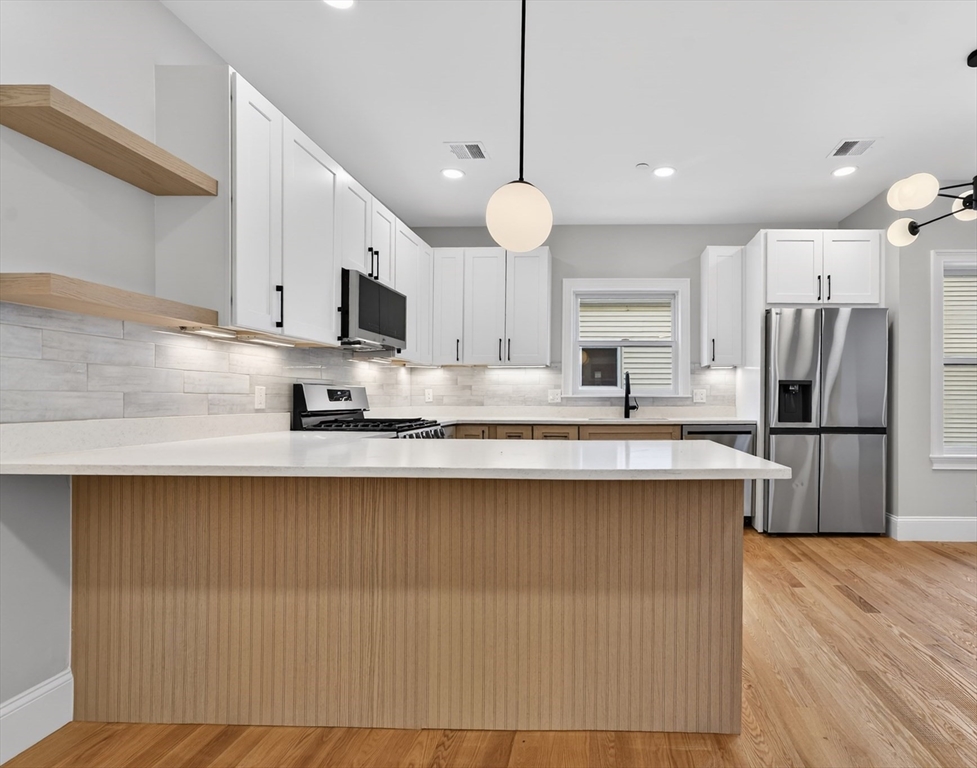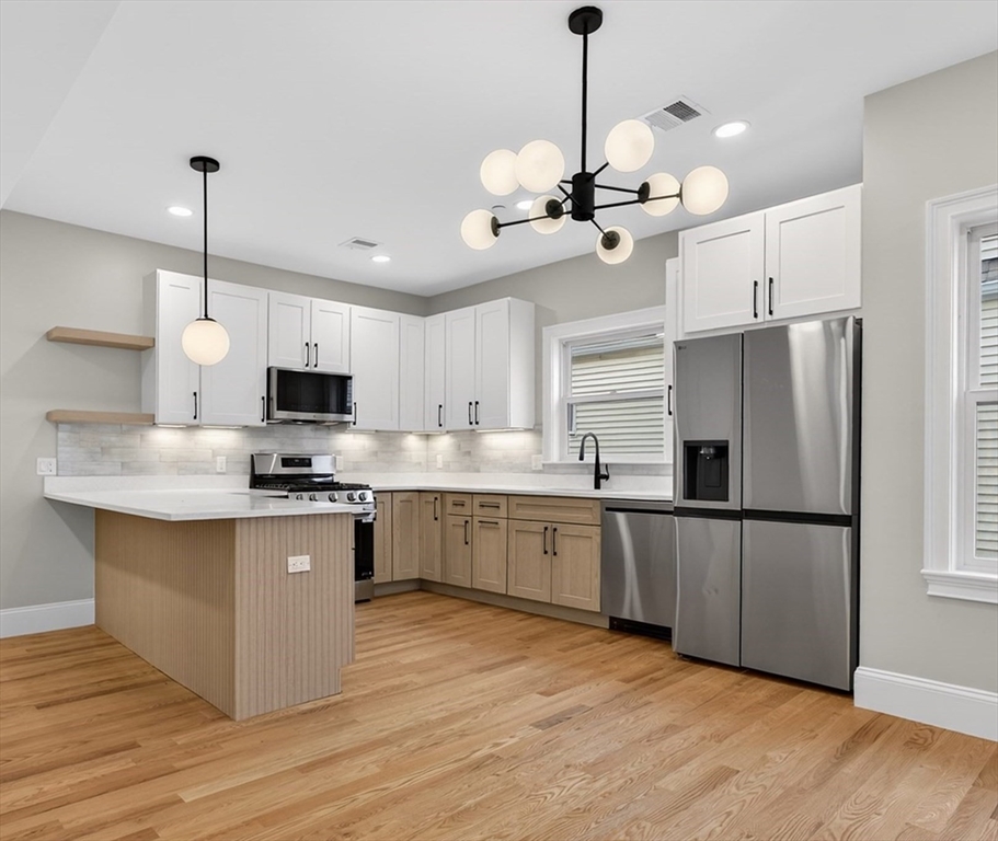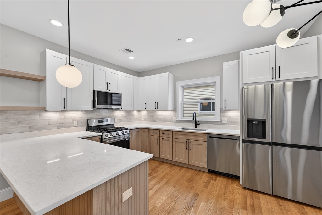HARD TO FIND HIGHLY SOUGHT AFTER BALL SQ NEIGHBORHOOD...STUNNING GUT RENOVATED LUXURY THREE BEDROOM... LESS THAN A QUARTER MILE FROM THE GREEN LINE SUBWAY....Gorgeous open floor plan with a contemporary vibe . Fireplace surrounded by Shiplap in the living rm with wide plank hardwood flrs. LARGE UPGRADED CUSTOM CHEF'S KITCHEN with soft close Shaker and Driftwood Cabinets, refrigerator with craft ice maker, a breakfast island, and great counter space. Full size eat in dining area. Spacious Primary Bedroom Suite with double basin sinks and LED mirror. In Unit Laundry. EXCLUSIVE PRIVATE STORAGE FOR UNIT IN BASEMENT. Exceptional soundproofing (sound attenuation insulation between units) & fantastic energy efficiency, built to the new energy code. Anderson Fibrex Low E Windows. Rated a Very Walkable Walk Score of 87, rated 'Excellent' for transit and a Biker's Paradise Bike Score of 99. . Only a half mile to the Davis Sq Red Line Subway. Includes One Year Limited Builder's Warranty.
