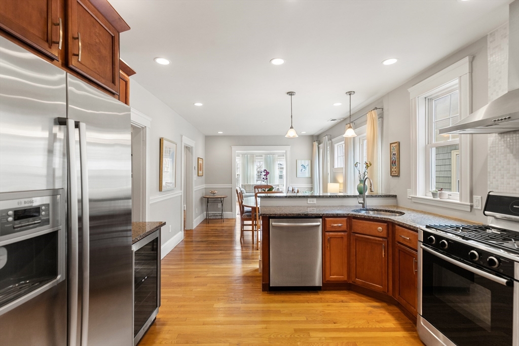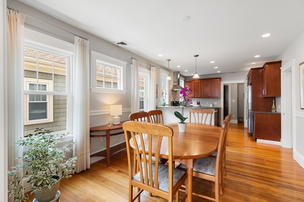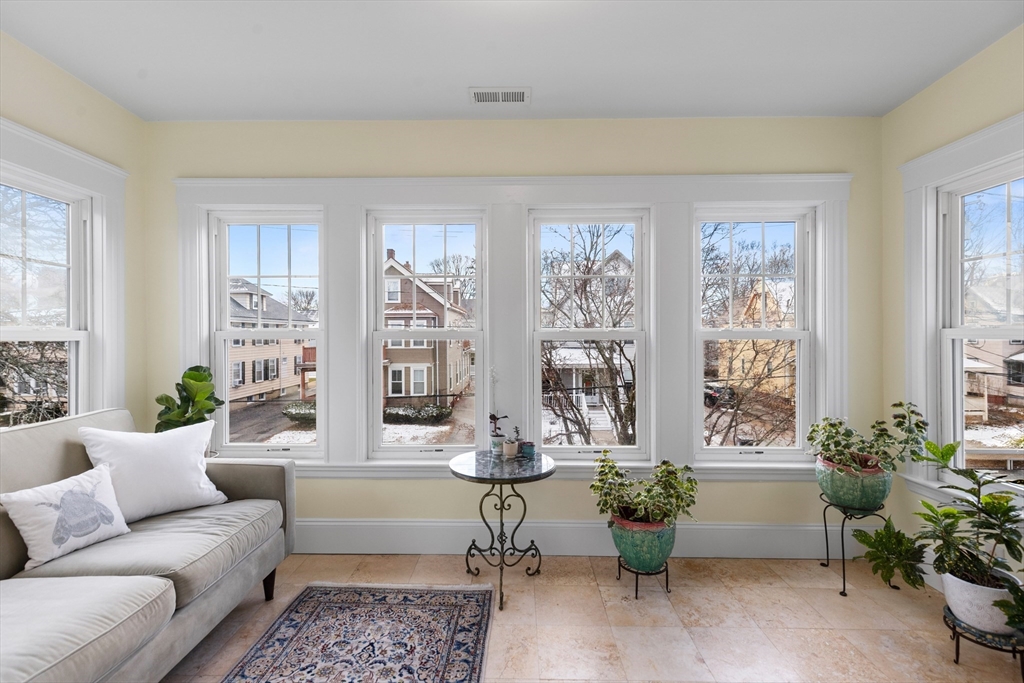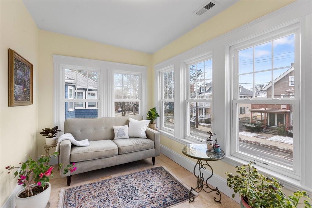 All the space you need in a great location! Located about a quarter mile to vibrant Arlington Center, you’re just a few blocks to many restaurants, shops, and cultural offerings that make this town special. Beautifully designed, this almost 1,800 sq ft 2-level condo was gut renovated in 2009 and has been thoughtfully and meticulously maintained. With southeast exposure, the condo is bathed in morning light. The main level includes living room with gas fireplace and bow windows, dining room, and sunroom with windows on 3 sides. The kitchen has loads of counter and storage space, stainless appliances, breakfast bar, even a beverage fridge. There are also 2 good-sized bedrooms, full bath, and stackable laundry. The upper level primary suite is a 560 sq ft retreat and features a spa-like bath and walk-in closet. Other features include central air, garage parking, back deck, and exclusive basement storage. Pet friendly. Come see!