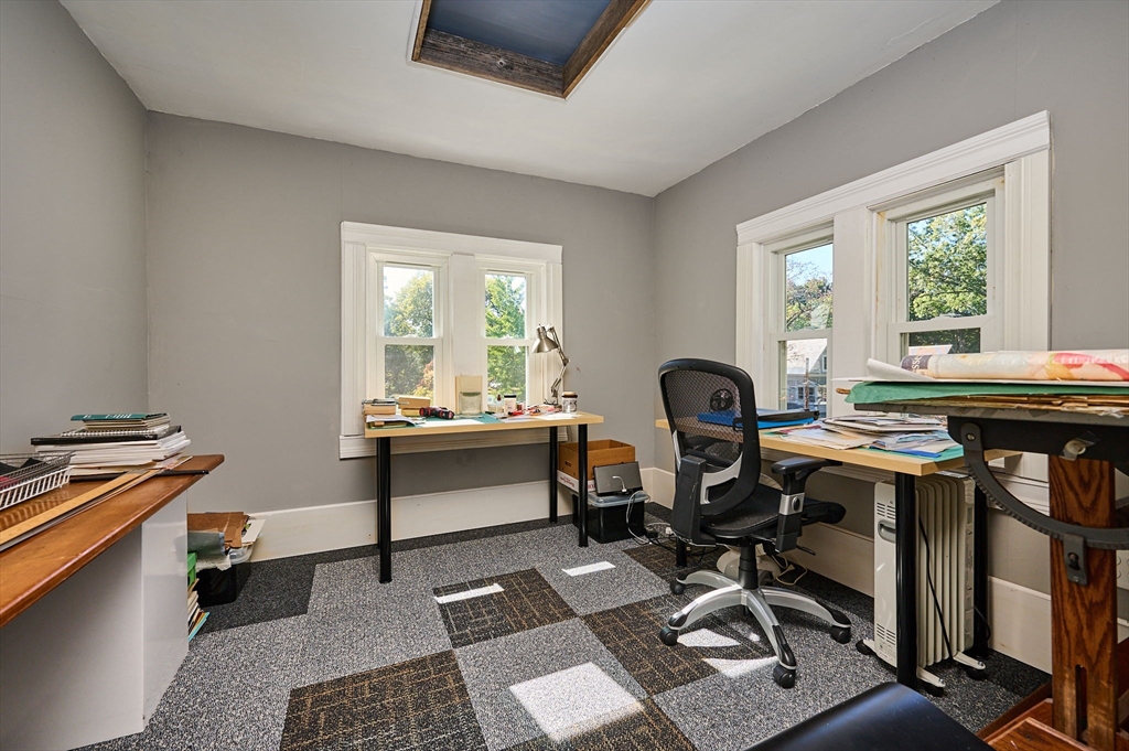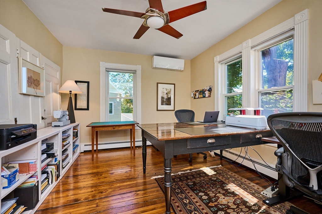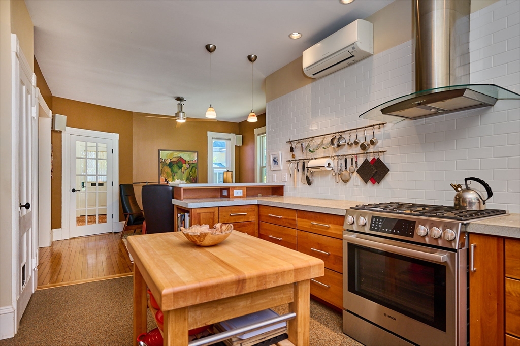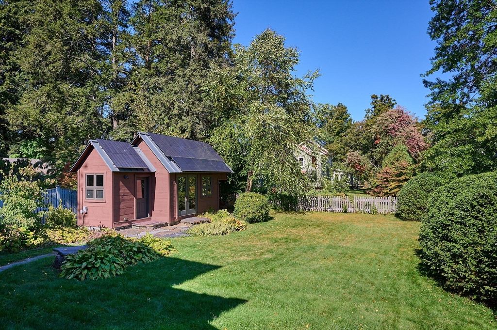 Situated at 46 Columbus Ave in Northampton, MA, United States, this renovated and updated 1892 Victorian single-family residence is located in a sought-after neighborhood within walking distance of downtown. Its 2040 square feet of generous living spaces has been meticulously maintained and features a library with gas fireplace, three dedicated bedrooms, walk-in closet, and two full bathrooms — ensuring convenience and utility for all residents within the home. The kitchen features custom cherry cabinets and a poured-concrete counter. The property encompasses almost a 1/4 acre of landscaped features, including Goshen stone walkways and a 208 square-foot post-and-beam studio erected in 2010 using timber salvaged from the current owner's childhood farm — suitable for work, artistic pursuits, playhouse, or a backyard haven. Double parking space beside house. This property is in tremendous condition and ready for new occupants.