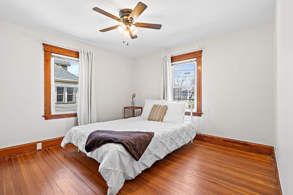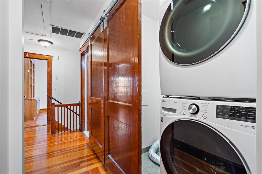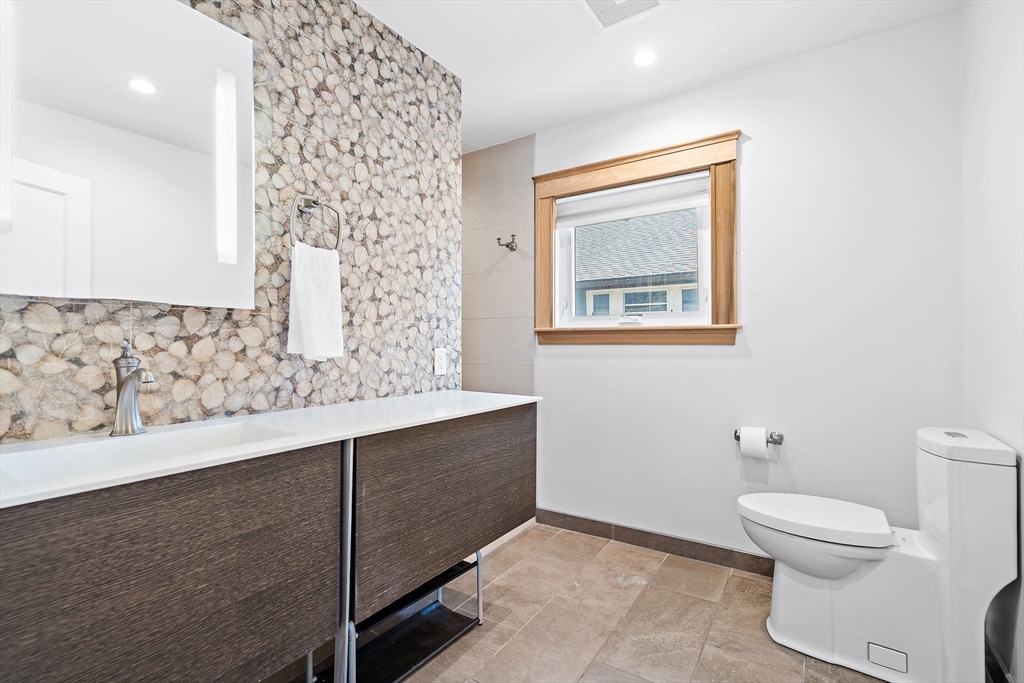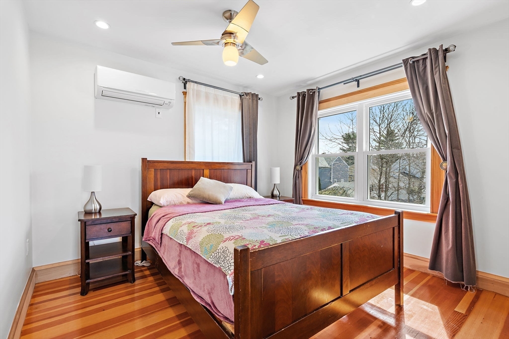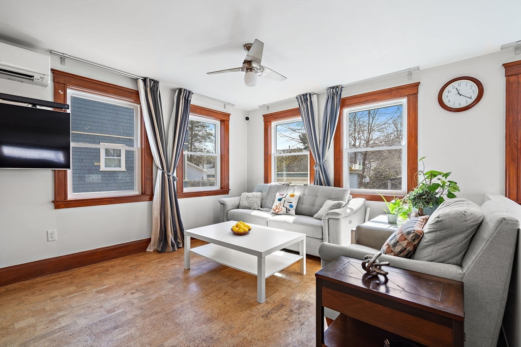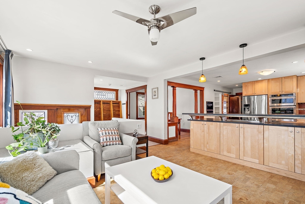 On a quiet street in the heart of Natick Center, this renovated antique pairs preserved details with well-executed updates. A 3-season porch welcomes you in. The foyer opens to a living room/office and custom kitchen with cork floors, custom cabinetry, soapstone counters and sink, pantry, built in coffee station, and breakfast bar. The family room sits just beyond, with a mudroom and stained glass at rear entry. A formal dining room and half bath complete the main level. Upstairs are four bedrooms, laundry, and two updated baths, including primary suite with radiant heat floors, tiled shower and private balcony. The lower level includes storage, bonus room, and workshop or craft space. A patio, 2-car garage, shed, and level backyard add covered parking, storage and space to garden, play or relax. Benefit from cost-saving features like solar panels, insulation and EV charger. Close to shops, restaurants, and commuter rail in Natick's vibrant town center!