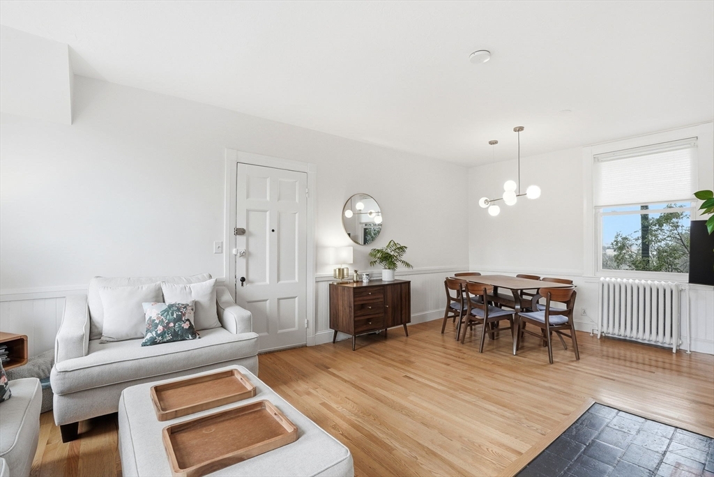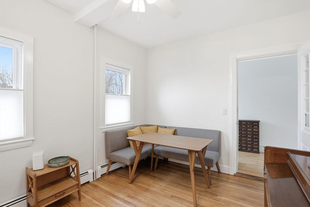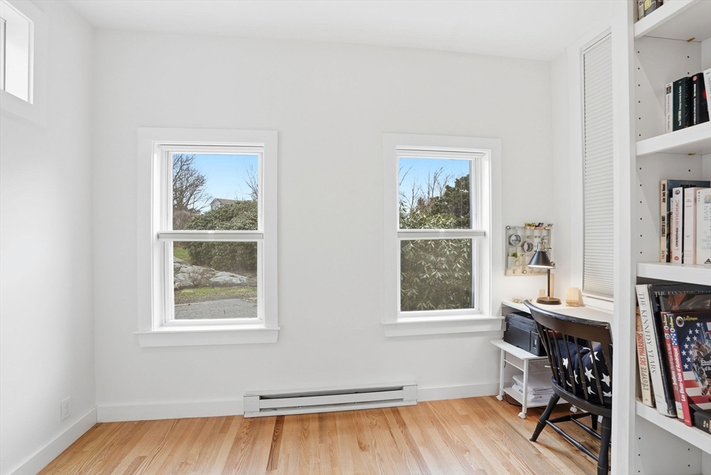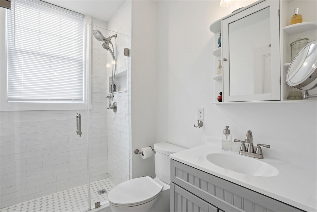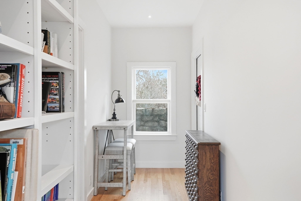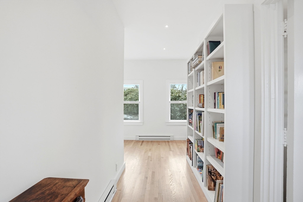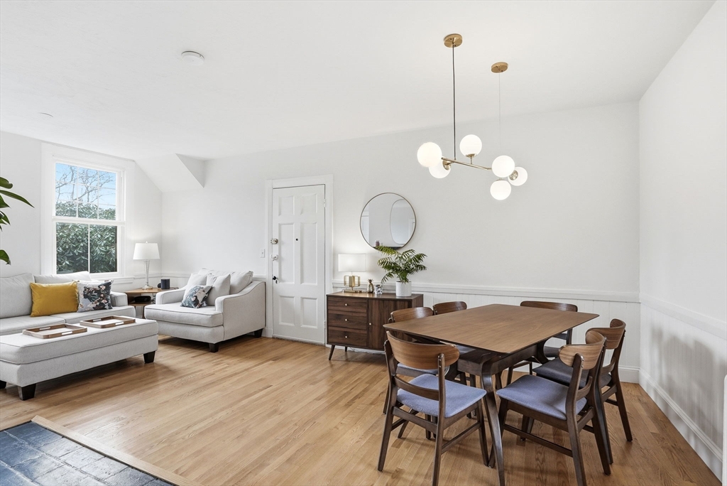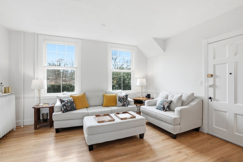 Beautifully updated 2BR, 1BA first-floor residence set within a historic Cohasset home, offering a rare blend of timeless architecture and refined 2022 renovation. Truly one of a kind, it features the only attached garage in Howe Estates. —an exceptional amenity seldom found in properties of this character. Pride of ownership is evident throughout. The home showcases new hardwood floors, a thoughtfully redesigned kitchen and bath, updated plumbing and electrical systems, and elegant finishes. The kitchen offers quartz counters, custom cabinetry, S/S appliances, walk-in pantry, and a breakfast nook. High ceilings and abundant natural light enhance the spacious living/dining area. The layout includes a primary bedroom with walk-in closet, second bedroom, office with built-ins, mudroom, and private storage. Ideally located near Straits Pond, beaches, Cohasset village, commuter rail and minutes to Hingham ferry to Boston.
