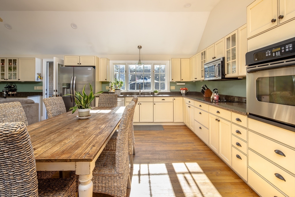 81 Aucoot Rd is the kind of home you dream about when you imagine moving to a small town. This one-level living home (there is one bedroom/home office above the garage) has had many incarnations. The original antique home was built c.1850. In 2007, the home’s then owner put on an addition made up of the living room/kitchen, screened-in porch, and garage/2nd story room. And then in 2019, the current owners built a beautiful primary bedroom-suite addition w/ vaulted rooms, ensuite bath, roomy hallway w/ big closets and another bedroom. Altogether this home has 2294 sq ft, 4 bedrooms, 2.5 baths, a large open-concept living room/kitchen/dining room, a separate family room w/ wood burning fireplace, a screened-in porch that can be used all year round if needed, and a back deck and new stone patio w/ built-in firepit. Many other improvements. 2 car garage w/ workshop. Newer 4BR septic. Town water. Irrigation. Large .98 acre lot. And just down the street from the town’s Aucoot town beach.