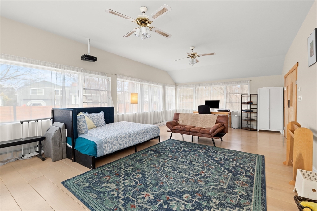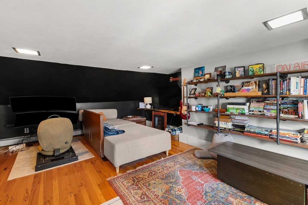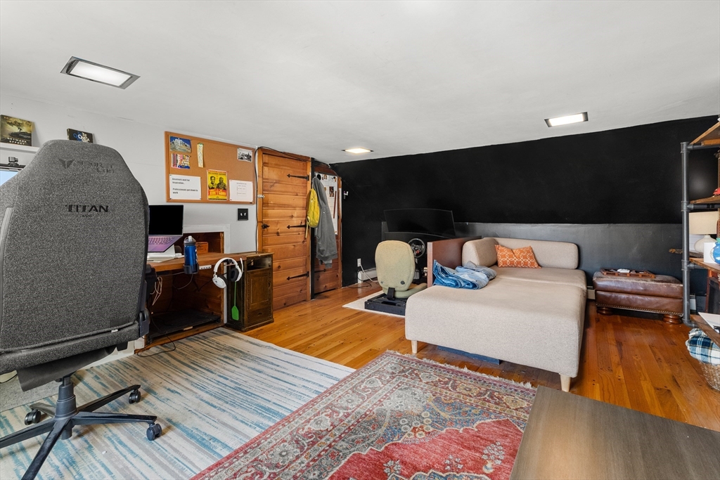 Expanded Cape in the heart of town! This home offers a sun-filled living room with a fireplace, an updated kitchen with lots of cabinets, a farmhouse sink and a dining area. There is a spacious family room with sliders to large backyard plus bonus room which could be an office, gym or second family room. First-floor primary suite offers a walk-in closet, en suite bath and door leading to a deck. There are two additional bedrooms and an updated full bath on main level. The second floor offers two bedrooms, den/sitting room, a half bath and great storage. The lower level offers potential for additional living space. Other features include a one car garage, a large fenced yard (with additional access from Hawthorn Road), an EV charger and much more!