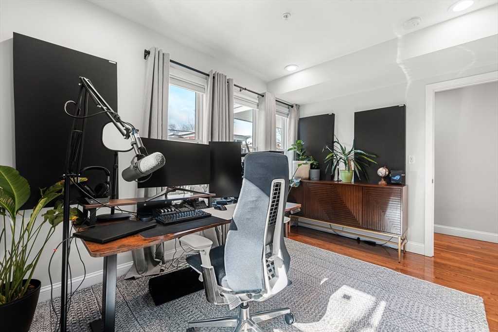 Set on a picturesque tree lined street in Jamaica Plain’s coveted Stony Brook neighborhood, this exquisitely renovated 3 bedroom 2 bath residence offers a refined blend of modern sophistication and timeless design. A sun filled, open concept layout showcases hardwood floors and seamless flow for elevated living and entertaining. The designer kitchen features custom cabinetry, stone countertops, stainless steel appliances and gas cooking. The serene primary suite offers a spa inspired bath, while two additional bedrooms provide flexibility for guests or a home office. Amenities include central air, in unit laundry, tankless hot water and private storage. Enjoy front and rear decks plus a shared patio with fire feature. Includes 1 non tandem parking space. Moments to Jamaica Plain's top cultural, dining and entertainment destinations. Convenient access to public transportation and the arborway.