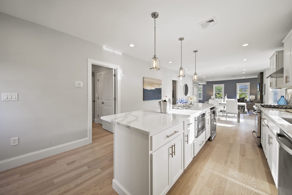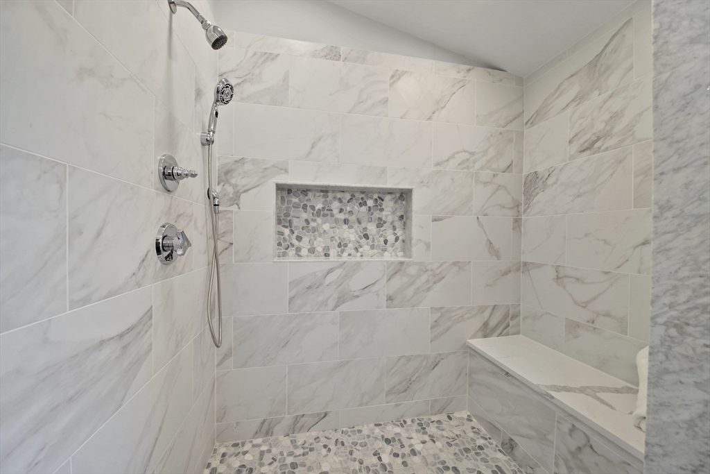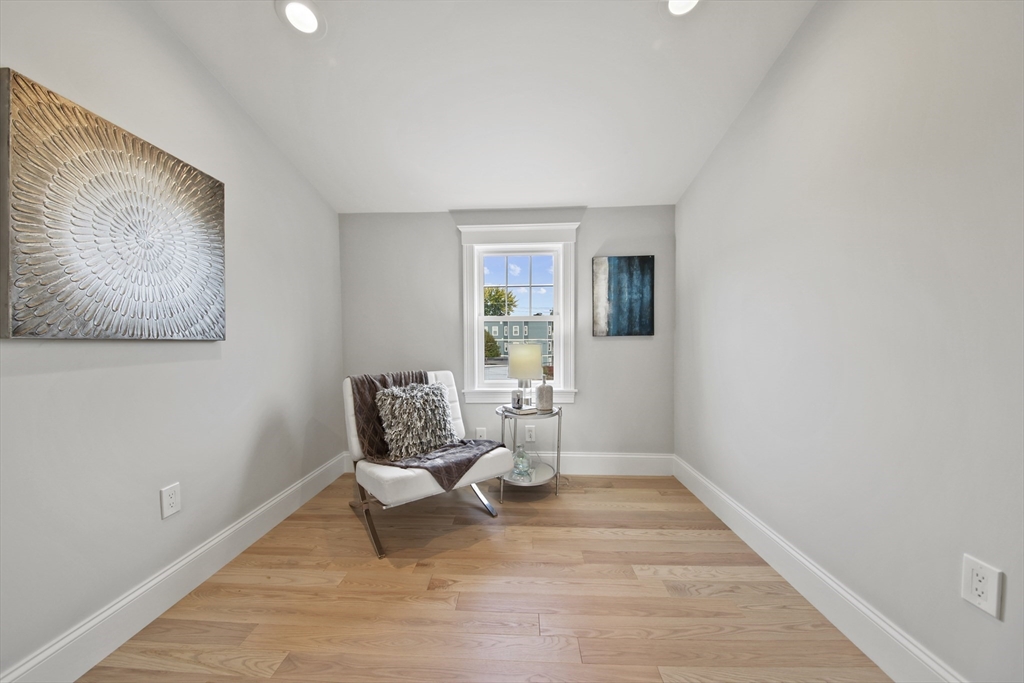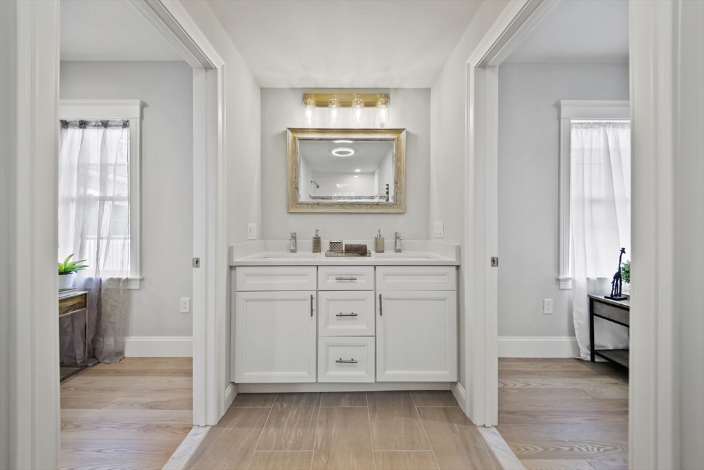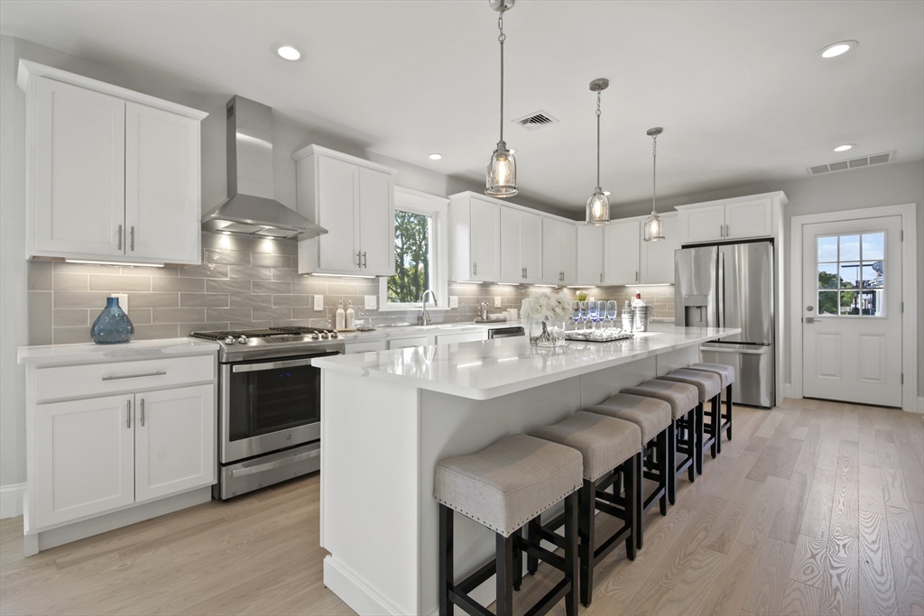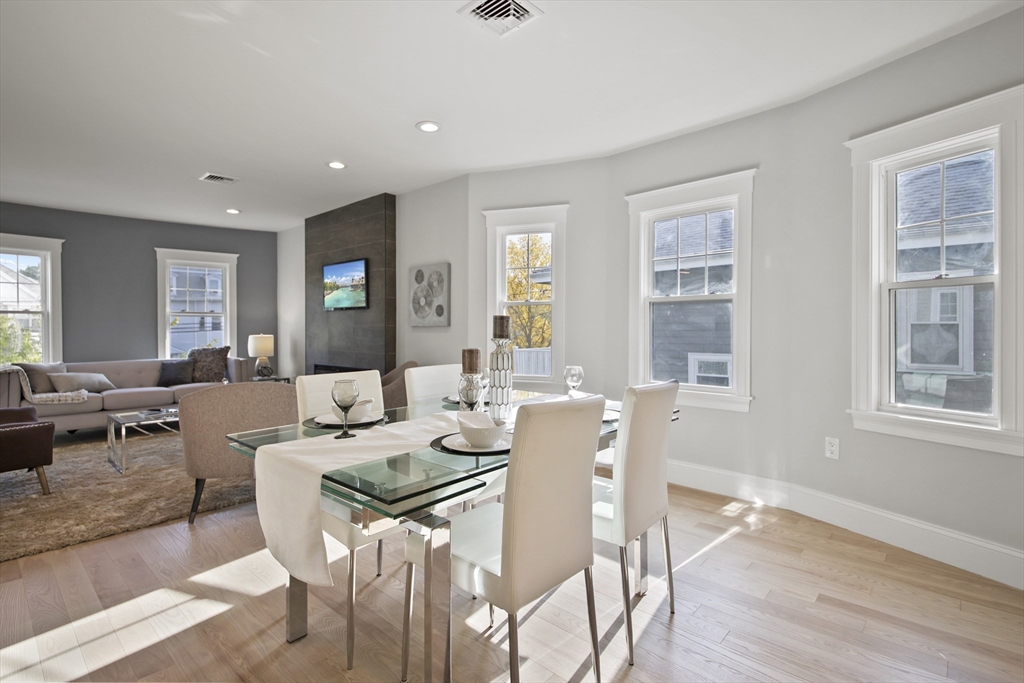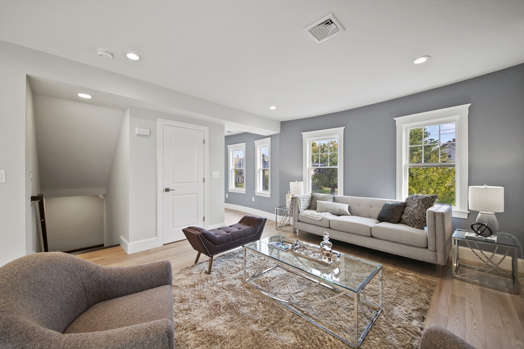 Stunning renovated condo w/ all modern fixtures & finishes! This 3 bedroom/2.5 bath is perfectly situated in East Arlington w/ numerous restaurants & shops just minutes away! The main living level boasts beautiful hardwood flooring, an electric fireplace, and an open concept floorplan! Kitchen complete w/ SS appliances, quartz countertops, large center island, quartz countertops, wine cooler, & exterior access to the back deck - ideal place to enjoy a crisp fall day! Two bedrooms located on main level connected by full bathroom w/ tiled shower/tub. An additional half bath completes the first floor. Upstairs you will find the spacious primary bedroom which is bright and sunny and has a walk-in closet w/ custom built-ins. Beautiful private bathroom w/ dual vanity, walk-in shower w/ tiled walls & stone floor. Separate space which can be used as a sitting room or office. Washer/dryer hookups available in unit. Paved driveway w/ shared backyard. Don’t let this be the one that got away!!