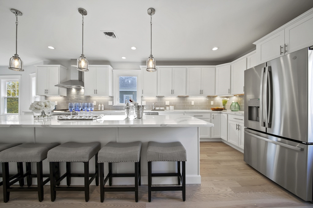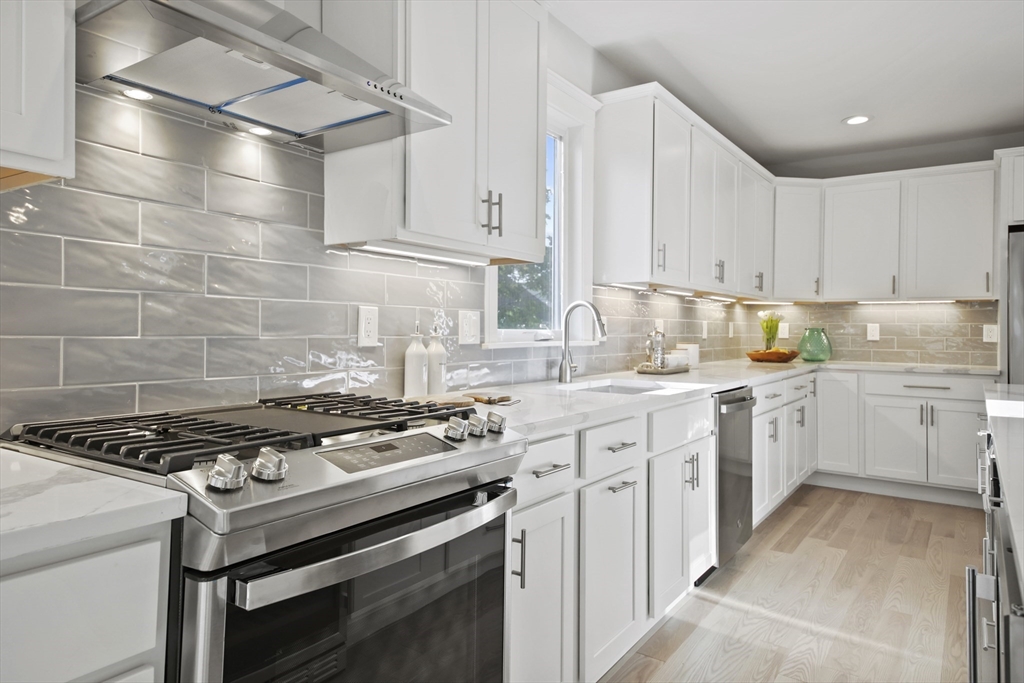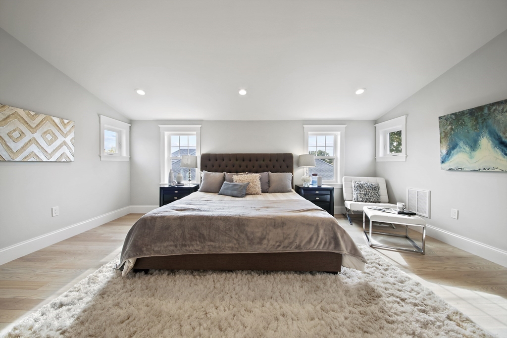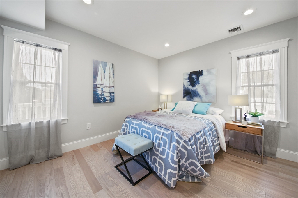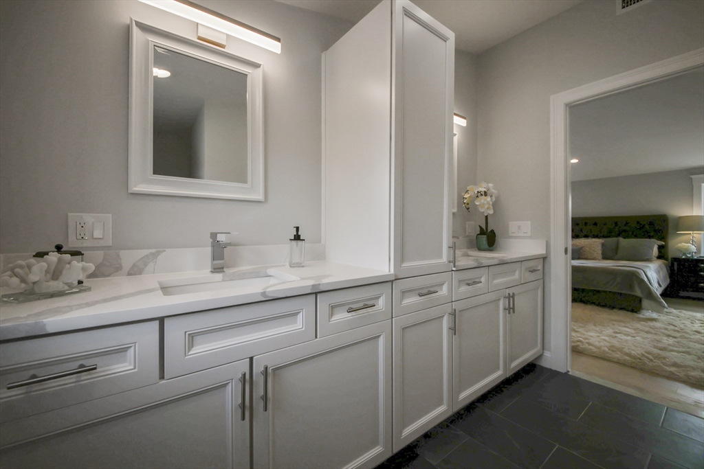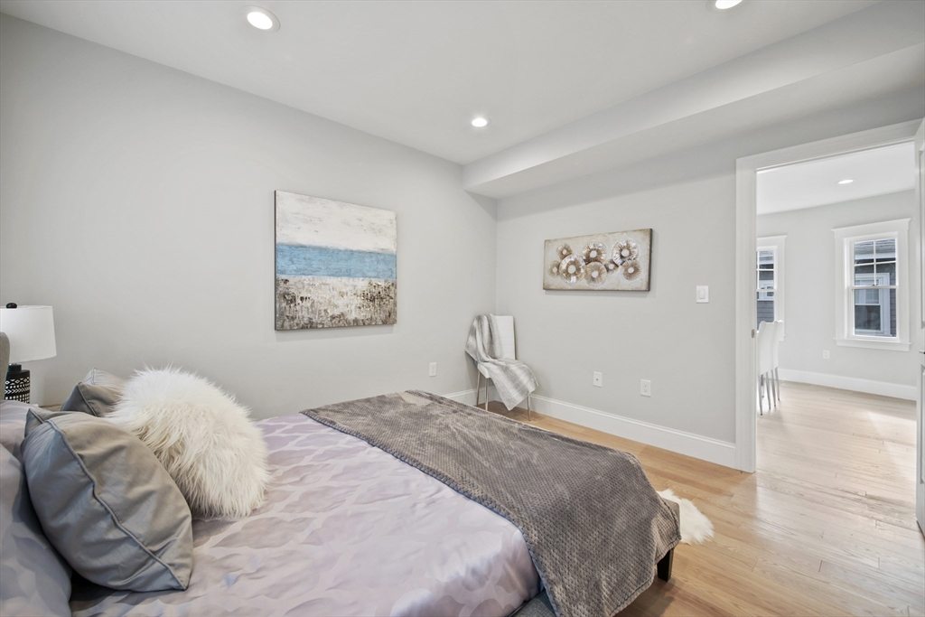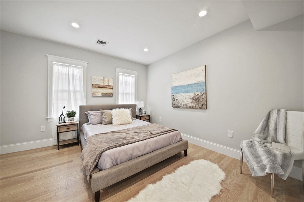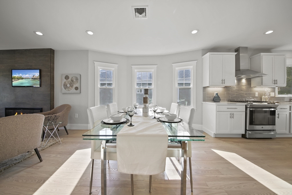 Stunning renovated condo w/ all modern fixtures & finishes! This 3 bedroom/2.5 bath is perfectly situated in East Arlington w/ numerous restaurants & shops just minutes away! The main living level boasts beautiful hardwood flooring, an electric fireplace, and an open concept floorplan! Kitchen complete w/ SS appliances, quartz countertops, large center island, quartz countertops, wine cooler, & exterior access to the back deck - ideal place to enjoy a crisp fall day! Two bedrooms located on main level connected by full bathroom w/ tiled shower/tub. An additional half bath completes the first floor. Upstairs you will find the spacious primary bedroom which is bright and sunny and has a walk-in closet w/ custom built-ins. Beautiful private bathroom w/ dual vanity, walk-in shower w/ tiled walls & stone floor. Separate space which can be used as a sitting room or office. Washer/dryer hookups available in unit. Paved driveway w/ shared backyard. Don’t let this be the one that got away!!