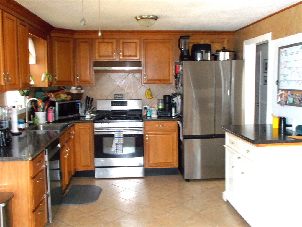 Freshly painted and ready for a new family! Beautiful raised ranch featuring an open floor plan with fireplace living/dining room and hardwood floors thru out the main level. Kitchen is open to dining room and features stainless steel appliances, gas stove and tile floor. Dining room offers slider to sunroom, deck and large level back yard that is mostly fenced in. New Azek exterior rake, corner and trim boards. Updates include 200amp electric panel 2021, baths, furnace, hot water tank, lighting, ceiling fans, many newer windows, front door, and fully insulated 2017. Solid family home featuring in-law potential or 4th bedroom in the sunlit partially finished lower level with new flooring and bath. Title V passed. Conveniently located near highway, shopping, and area amenities.
