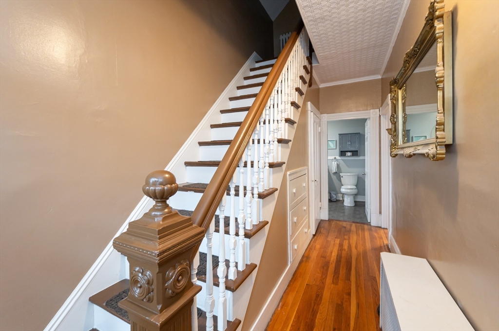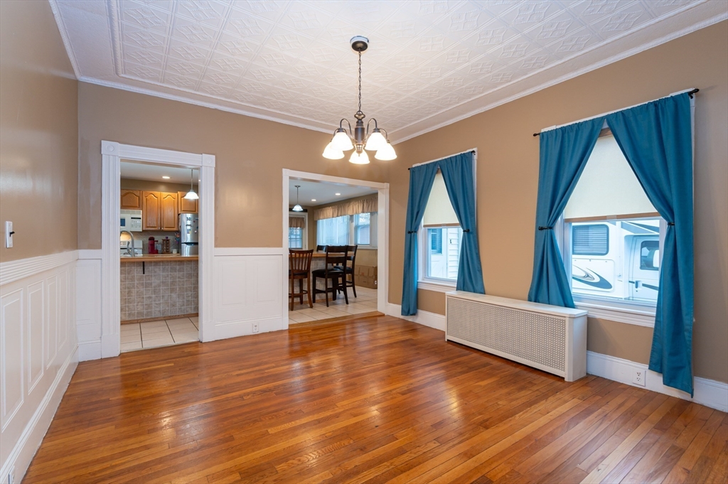 Welcome to 10 Fay Street in Lowell, a well-maintained New Englander ideally located for convenience. This home features charming traditional details, including a front door transom with sidelight windows, bullseye door framing, hardwood floors, and built-ins, along with a spacious kitchen offering an abundance of cabinetry and countertop space with ample seating. The first floor is completed by a laundry area and an updated bathroom. Upstairs, you’ll find three bedrooms with generous closet space and potential additional living space in the attic. Recent updates include a newer boiler, hot water heater, and a newer roof on the front portion of the home. Outside, a garage/storage shed and a backyard gazebo provide great options for storage, relaxation, and enjoying the warmer months. Don't miss the opportunity for a solid, move in ready home.
