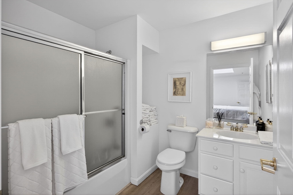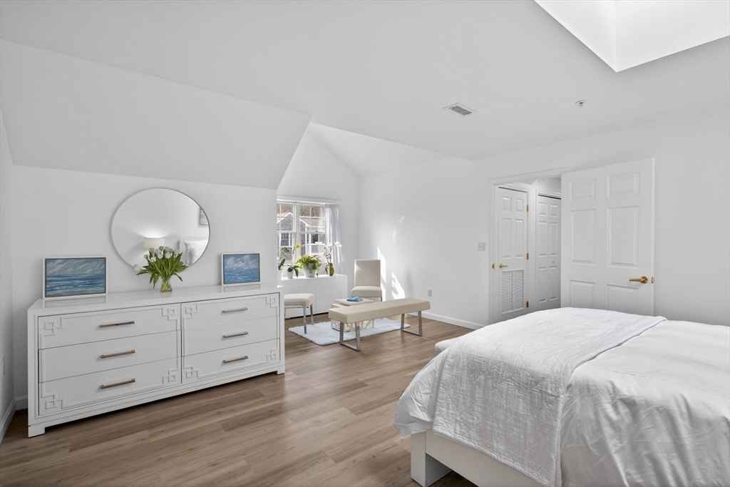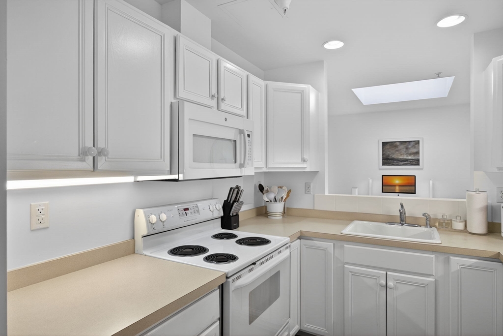 Park Place is the Premiere Chatham address for an easy-care lifestyle! These apartment-style condos cater to age 62+ residents seeking to enjoy a walkable location in Town, numerous opportunities for social engagement, an exercise room, library, garage parking, elevator and more. This unit on the top level features vaulted ceilings, skylights, and faces southwest to capture brilliant light and exquisite sunsets. The floor plan encompassing 1,284 sq ft offers a bright living room w/gas fireplace & built-ins, adjacent dining area w/private balcony, den/office, kitchen, and spacious bedroom suite complete w/walk-in closet and full bath. There's also a second bath w/laundry closet & ample storage. Many updates including new luxury COREtek flooring throughout (see complete list in attached documents.) Monthly fee includes inside/out maintenance, internet, heat, A/C, water, electricity, gas, master insurance, landscaping, snow & trash removal, 24/7 Concierge and more. Don't miss out!