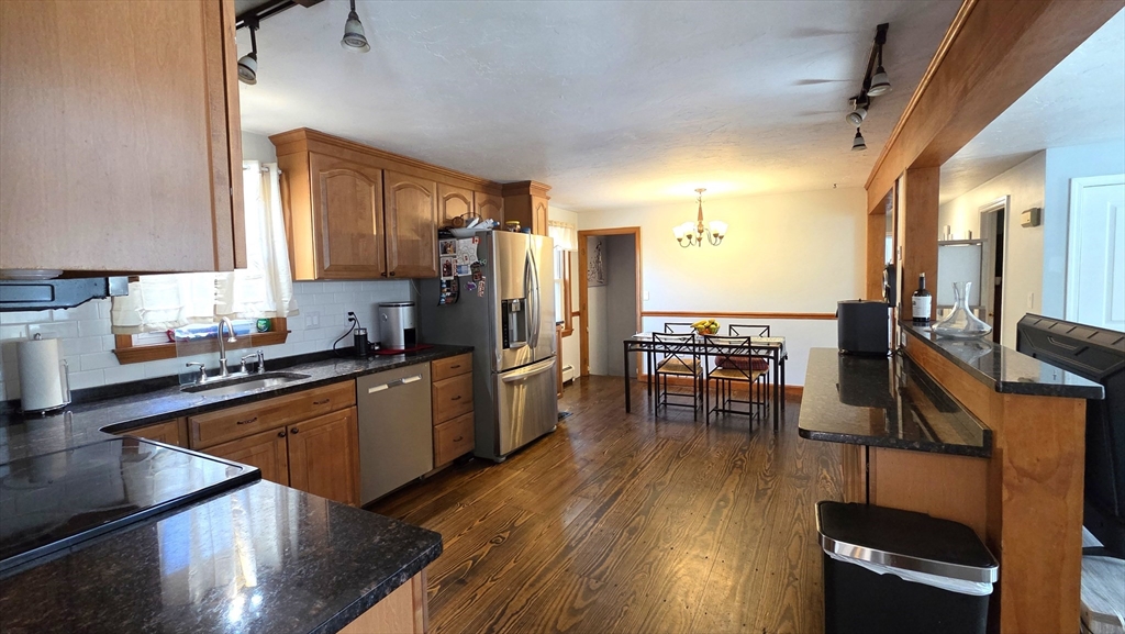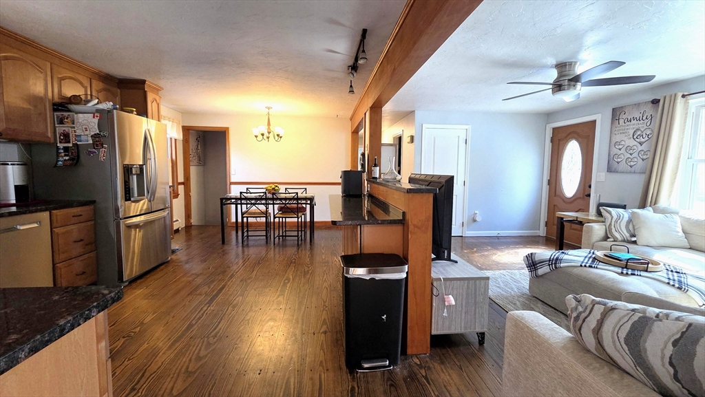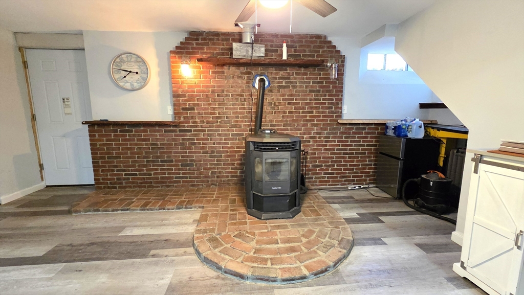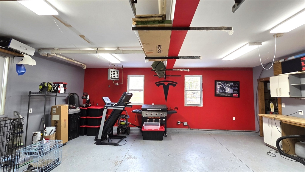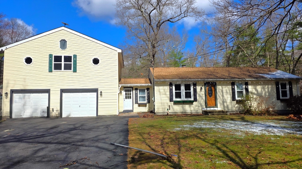Set on a gorgeous, level 2-acre lot, this expanded ranch is perfect for anyone who loves gardening, tinkering, or spending time outdoors. A tiled breezeway connects the original home to a heated 2-story, 2-car garage, with a spacious primary suite above featuring a cathedral ceiling, walk-in closet, second double closet, and private bath with jetted tub. The main level offers a generous kitchen with granite, stainless appliances, a unique dining counter, and an open flow to the living room, both with wood floors. A renovated full bath, plus three bedrooms—one with a walk-in closet—complete this floor. The lower level adds a large game room with pellet stove, an exercise/laundry room, and an office or hobby space. Outside, enjoy a rustic stone patio with fire pit, an open cookshack, a heated detached garage with power, and a large chicken coop. With a lot stretching roughly 700 feet deep, there’s room for gardens, gear, projects, and all the hobbies that need extra elbow room.
