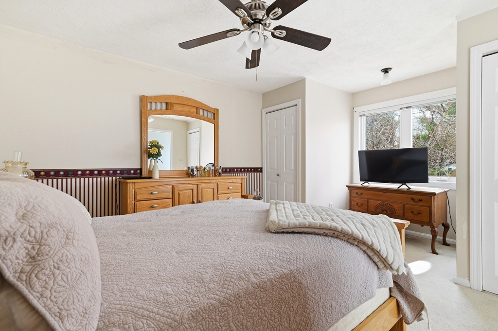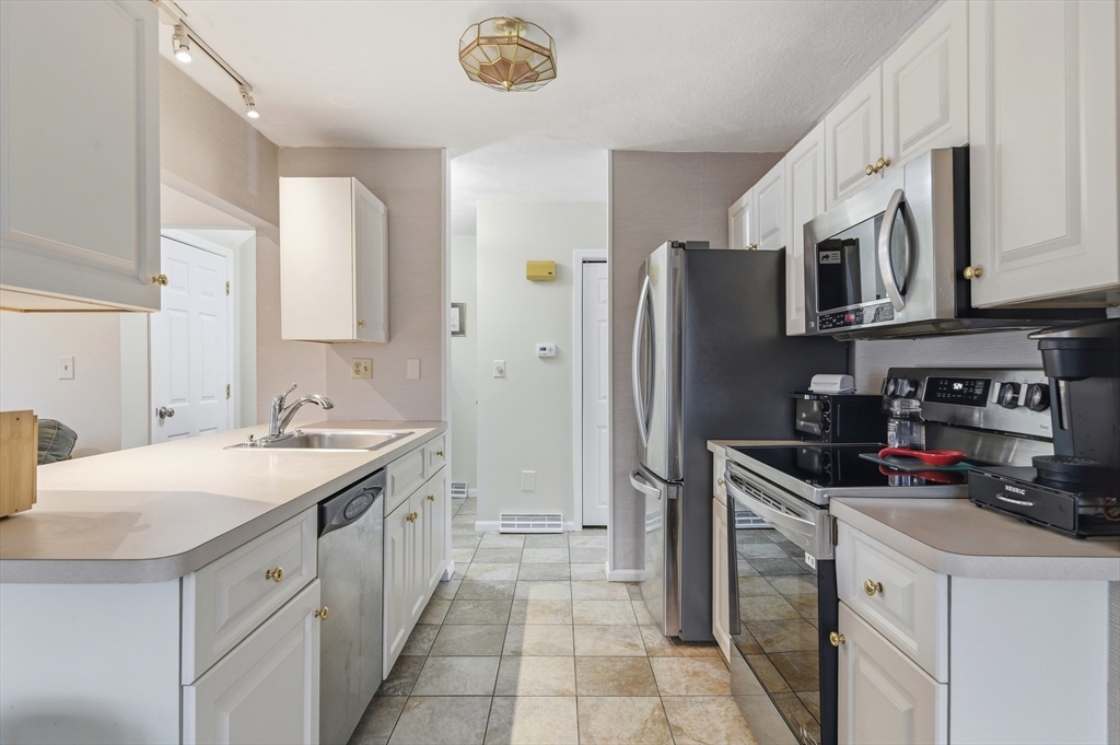 Welcome to Stoneledge, South Weymouth's best-kept secret! Tucked in the secluded corner of this charming 51-unit community, this end-unit tri-level townhome delivers the space and privacy rarely found in condo living. Nearly 1,900 sq ft across three defined levels with 2–3 bedrooms, 3 full baths + 1 half bath, perfect for entertaining, working from home, or hosting extended family. Soaring vaulted ceilings and skylights bathe the interior in natural light, while the fireplaced living room adds warmth and character. A beautiful deck and private patio extend your living space outdoors into a lush, calm setting. Newer HVAC and condenser, move in with total confidence. Two parking spaces, in-unit laundry, and an association covering grounds, snow, trash & insurance make for truly low-maintenance living. Prime location, minutes to Rt. 3, Rt. 93, and the South Weymouth Commuter Rail, with shopping, dining all nearby. End units are rare, don't miss this one! Open House: Sat, 4/4 @ 12-1:30pm.
