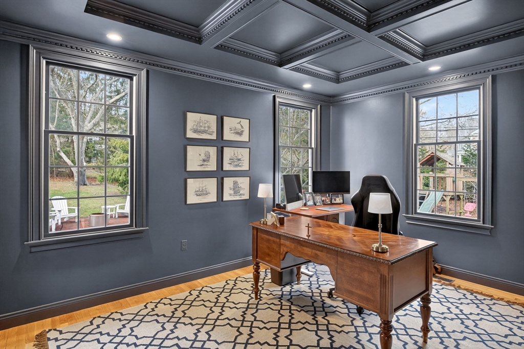 Set within an exclusive North of 6A association with deeded beach rights, this exceptional residence offers the perfect blend of coastal charm and refined living ideal for those seeking a luxurious weekend escape or a year round Cape Cod retreat. Privately positioned on a beautifully landscaped 1.33-acre corner lot among stunning homes, this Contemporary Farmhouse showcases timeless curb appeal with an inviting farmer's porch. Mature plantings and thoughtfully designed outdoor spaces including a spacious deck, brick patio, and shaded yard create an idyllic setting for relaxed summer living. A two car garage provides ample storage for all your coastal essentials, from bikes to kayaks, making beach days effortless. Inside, the home is defined by quality craftsmanship and a thoughtfully designed floor plan that balances open gathering spaces with private retreats. Recently renovated within the last five years, the interior is enhanced by custom millwork, wainscoting, coffered ceilings, Fr