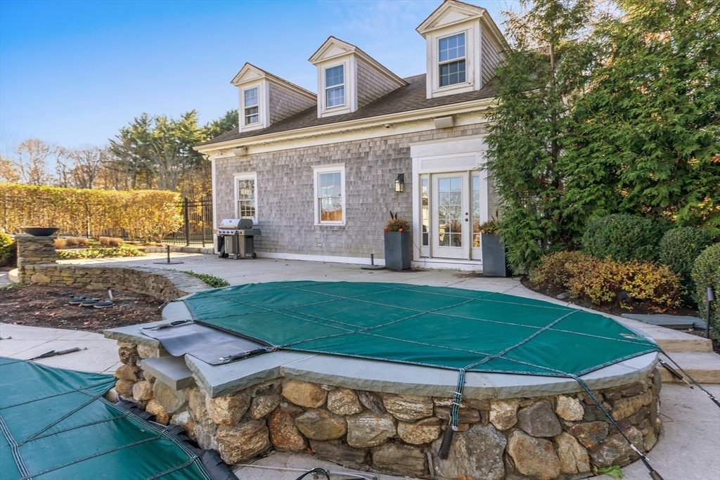 One of Hingham's most admired homes! Landmark colonial with a sweeping front lawn, set elegantly atop a knoll on a 2.2 ACRE lot on a quiet cul de sac, just a stone's throw to downtown Hingham. The current owner has beautifully updated this architecturally significant home to meet the needs of today, while maintaining its original elegance. Gracious 11' ceilings, floor to ceiling windows, front and back staircases and period details throughout. Fabulous recently renovated "wing" off the back of the house with a gorgeous custom kitchen flooded w/natural light OPEN to a large dining area and spacious family room. There are 5 Bedrooms and 3 baths on the second floor including a luxurious primary suite. Opportunity to craft the 3rd floor as you wish. The grounds are EXCEPTIONAL. Expansive lawn, gunite pool with pool/guest house and over an acre of manicured lawn. RARE opportunity for the discerning buyer to acquire this ICONIC home/estate.