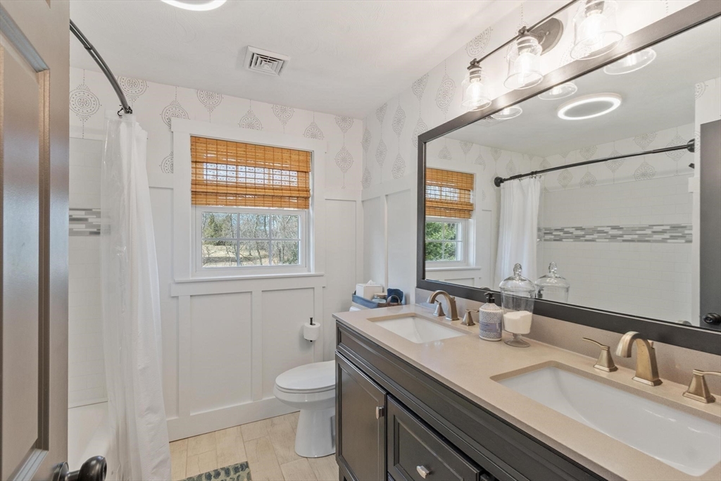 Welcome to 5 Rice Rd! A Custom Built Colonial in One of Auburn’s most sought after neighborhoods. This 4 bed, 2 1/2 bath open floor plan home was fully renovated in 2018 and includes new plumbing and electrical, Harvey windows, custom moldings and hard wood floors throughout. Step inside from the farmer’s Porch to immediately enter the recessed foyer overlooking the Family room with stunning custom built-ins and 9ft ceilings! Adjacent to the foyer is a Main floor office with bay window. The open concept main floor is perfect for today’s lifestyle, boasting a designer kitchen with Wolf cooktop, double ovens and microwave drawer as well as an oversized island. Access the spacious flat back yard from the family room or kitchen to the HUGE entertaining deck. The second floor includes a Primary bedroom with an ensuite bath, and 3 additional bedrooms share a bath with a tub/shower and double vanity. Don’t wait for the flowers to bloom to pick this property!