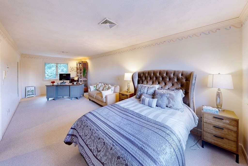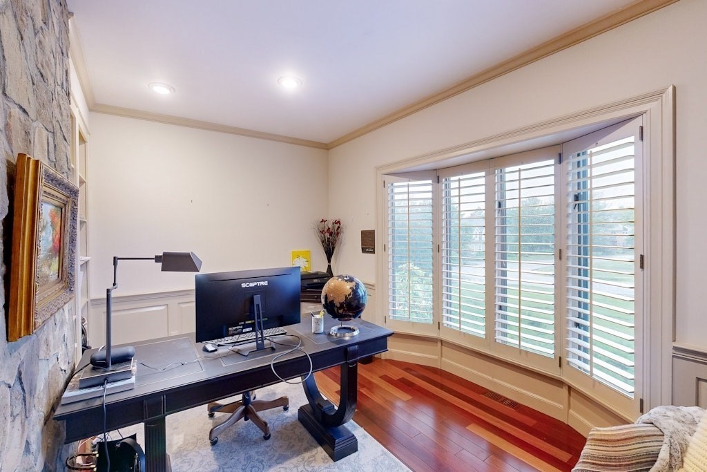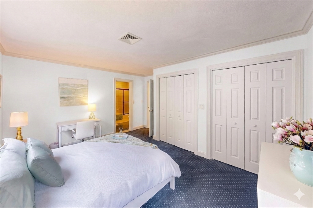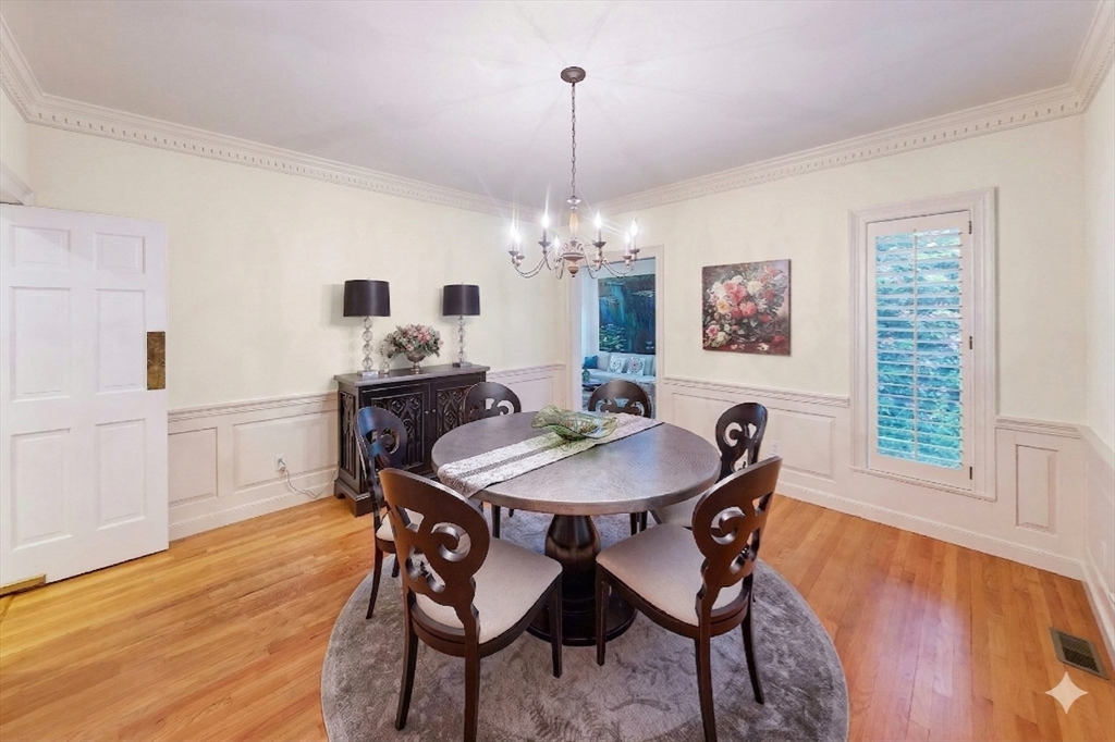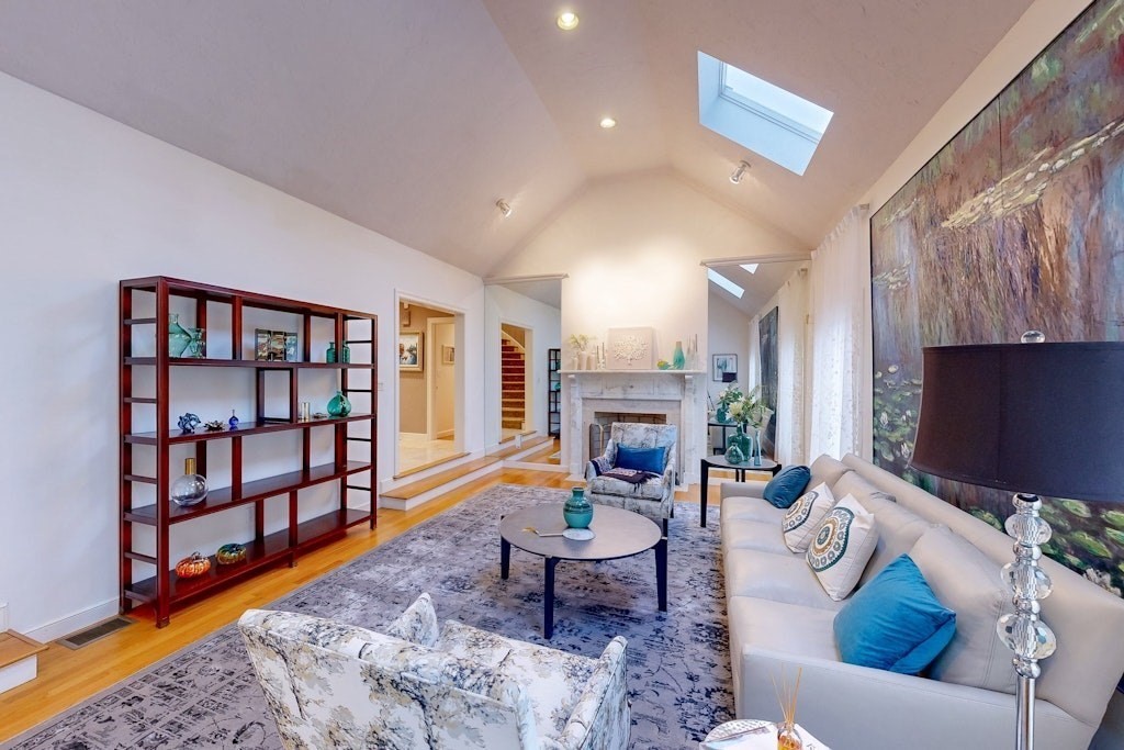 Sun drenched residence on a quiet cul-de-sac in Hardtcourt Estates with refined craftsmanship and an inviting &warm flair! Set on a full acre of beautifully maintained grounds, this stunning home features a sprawling main level with a spacious chef’s kitchen boasting abundant cabinetry, granite counters and a 6-seat breakfast area that opens to a lush private yard; a warm family room with built-in shelves and a striking stone gas fireplace, a formal dining room and a living room with soaring vaulted ceilings, skylights and a wood-burning fireplace. Completing the main level is a an elegant foyer with bridal staircase, a luxurious primary suite with spa-like bathroom, an office & a convenient laundry room. Upstairs you’ll find three additional spacious bedrooms and a great room above the 3-car garage perfect for entertaining or hobbies and much more. Ideally bordering Brooks School with an exclusive walking path to Lake Cochichewick and just minutes to the town center