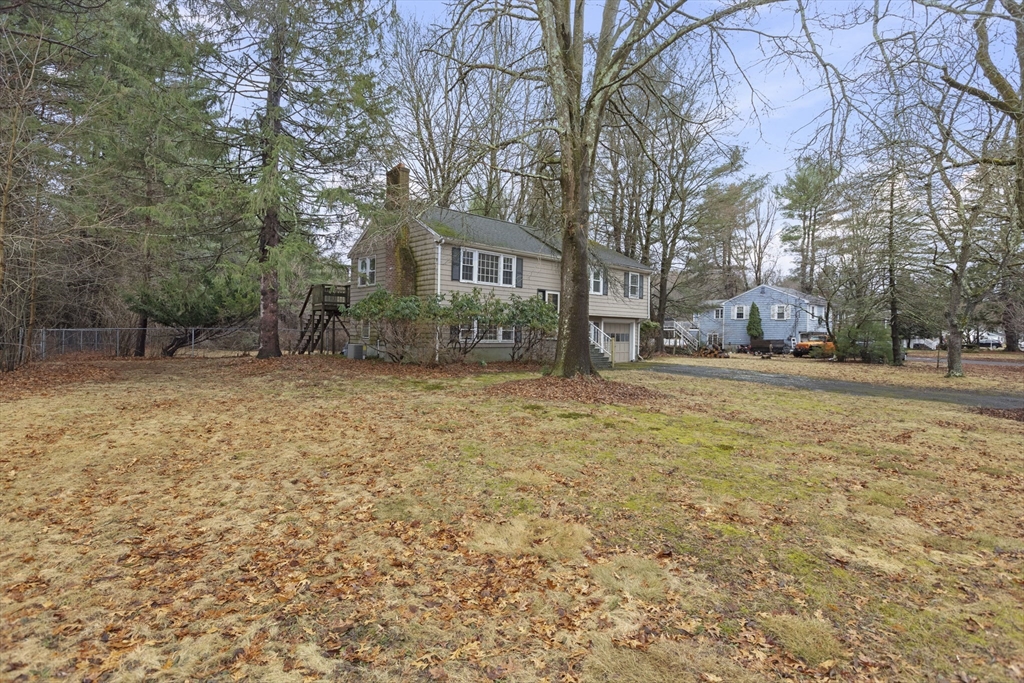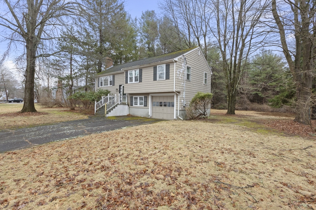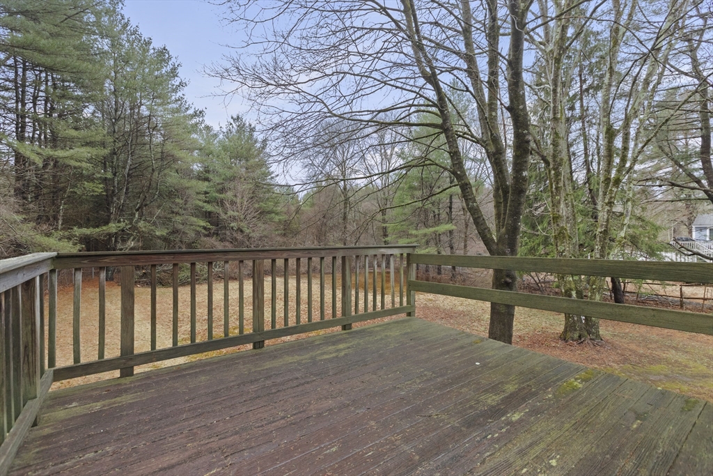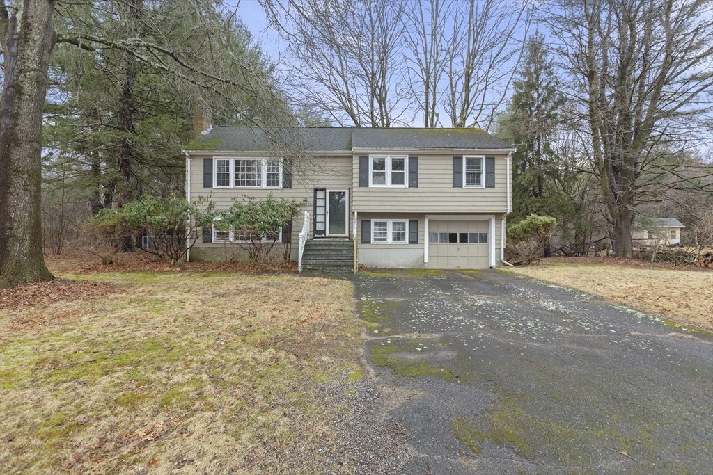 Wonderful opportunity to own in the desirable town of Millis. This 3 bedroom raised ranch home features a living room with a fireplace flanked by built-in bookcase/cabinets, a picture window and hardwood flooring that flows into the hallway, 3 bedrooms and the dining room. Natural light streams into the open floor plan of the dining room and kitchen which has a slider to a large wood deck overlooking a spacious backyard abutting the popular Oak Grove park. The great big backyard offers a wooded buffer in the back for privacy from the Oak Grove Trails. The unfinished lower level offers the buyer fantastic potential for their future expansion of a fireside family room, den/office/etc- flexible floor plan. The home has oil heat but nat’l gas is available at the home for a buyer's future conversion. Additional highlights include a 1-car garage, central A/C, nice location about 5 ½ miles to the Norfolk commuter rail and Millis' award winning schools. So much potential - don't miss out!