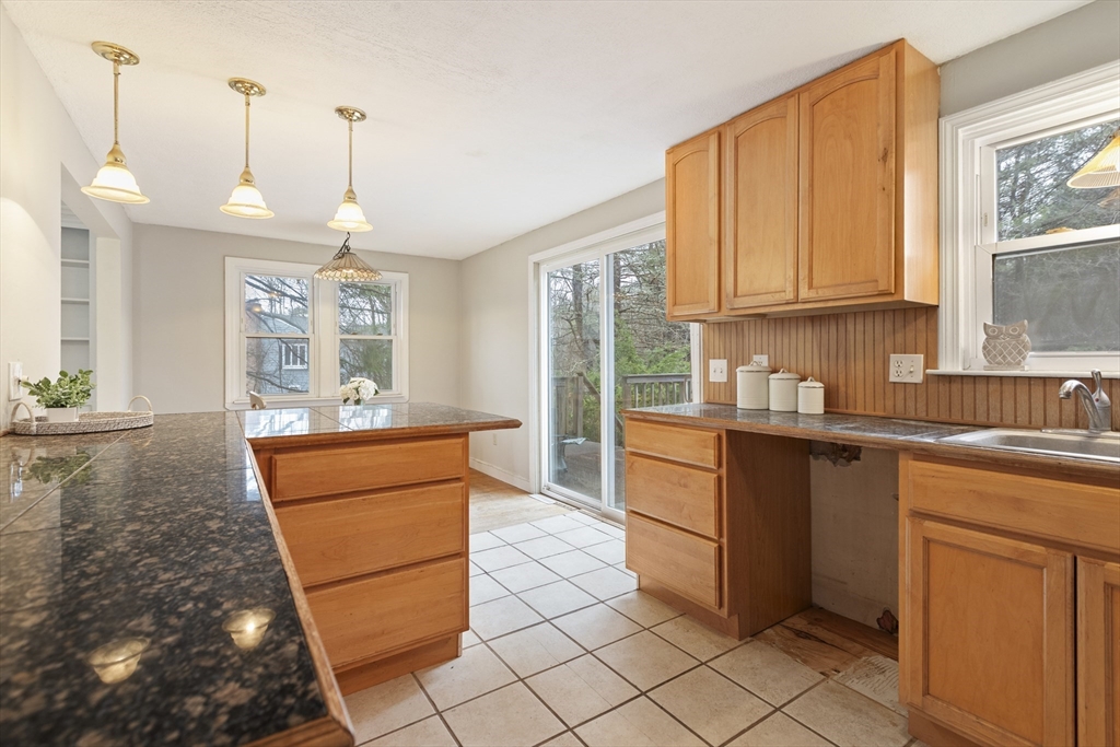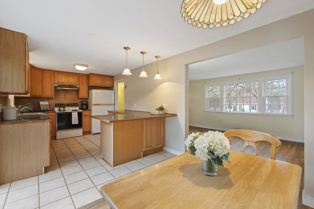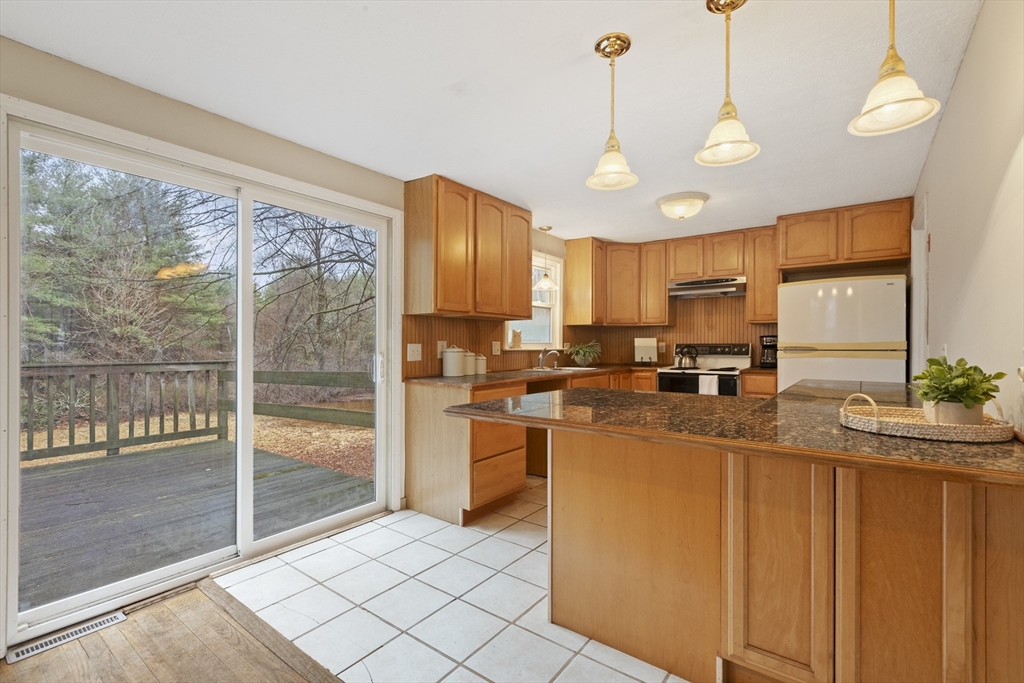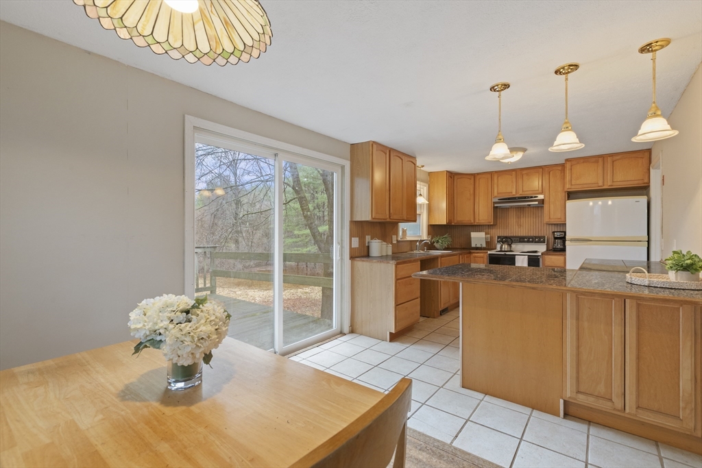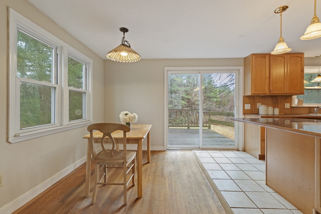 Wonderful opportunity to own in the desirable town of Millis. This 3 bedroom raised ranch home features a living room with a fireplace flanked by built-in bookcase/cabinets, a picture window and hardwood flooring that flows into the hallway, 3 bedrooms and the dining room. Natural light streams into the open floor plan of the dining room and kitchen which has a slider to a large wood deck overlooking a spacious backyard abutting the popular Oak Grove park. The great big backyard offers a wooded buffer in the back for privacy from the Oak Grove Trails. The unfinished lower level offers the buyer fantastic potential for their future expansion of a fireside family room, den/office/etc- flexible floor plan. The home has oil heat but nat’l gas is available at the home for a buyer's future conversion. Additional highlights include a 1-car garage, central A/C, nice location about 5 ½ miles to the Norfolk commuter rail and Millis' award winning schools. So much potential - don't miss out!