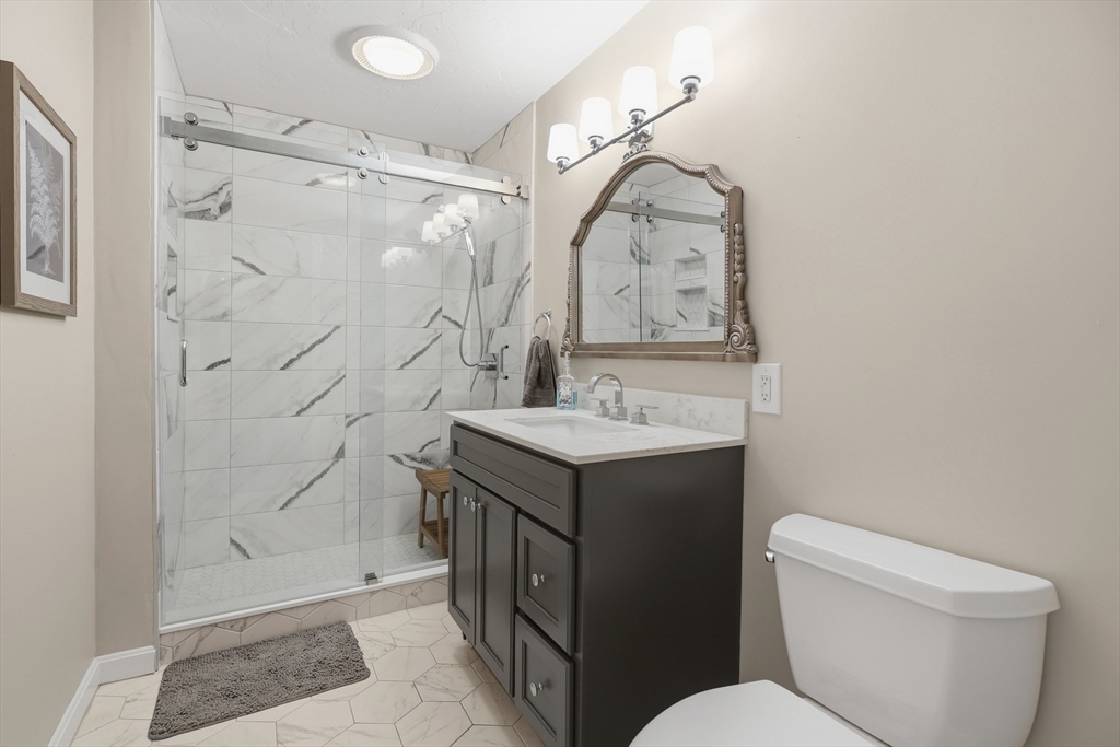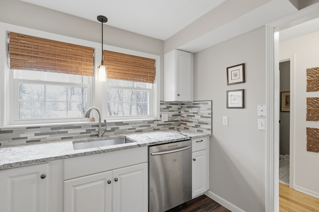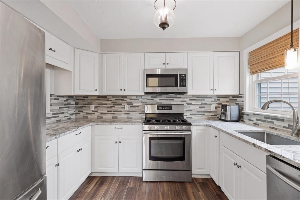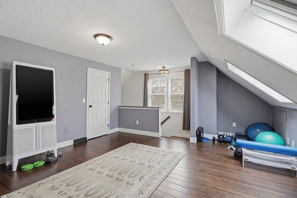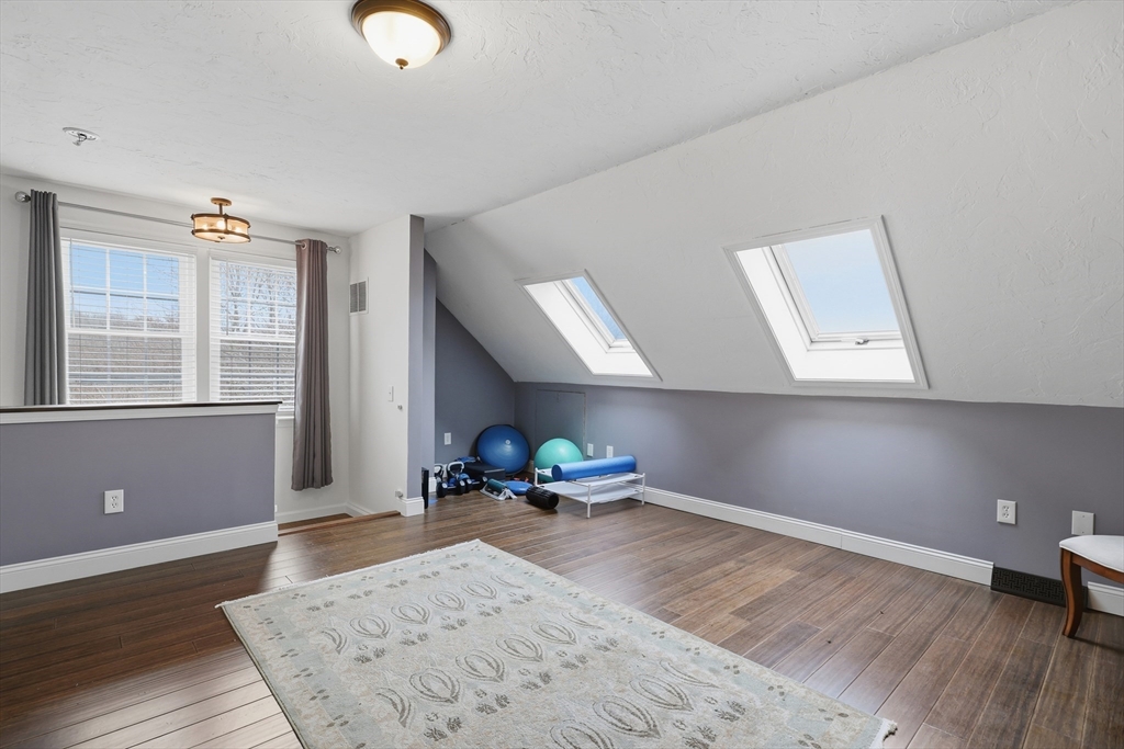 Welcome to this beautifully maintained 2BR, 1.5BA end unit townhouse at the desirable Hovey Pond Estates in Grafton. This multi-level unit offers a bright & inviting layout, perfect for comfortable everyday living. The sun-filled living room features a slider to a private balcony/deck w a fabulous view of Hovey Pond, making it the ideal spot to enjoy your morning coffee. The kitchen was thoughtfully designed w stainless appliances, gas cooking & granite counters. On the next level, you’ll find 2 spacious BRs, each offering generous closet space, along w a beautifully renovated BA w tile surround, glass doors & more. The 3rd level adds more versatility w a bonus family rm featuring skylights, perfect for a home office, gym or guest space. Add’l highlights include in-unit laundry, a 1-car garage & an assigned parking space. Conveniently located to restaurants, shops, Routes 20, 30, 140, the Mass Pike & Tufts Animal Hospital. Updates include the ½ BA, the full BA & flooring.