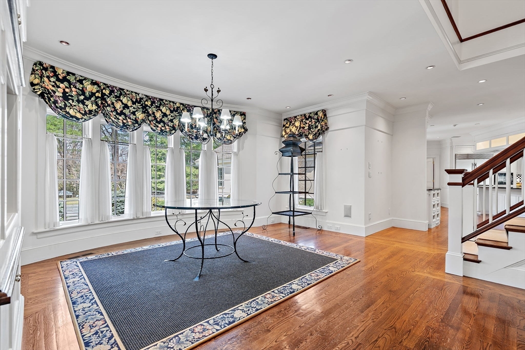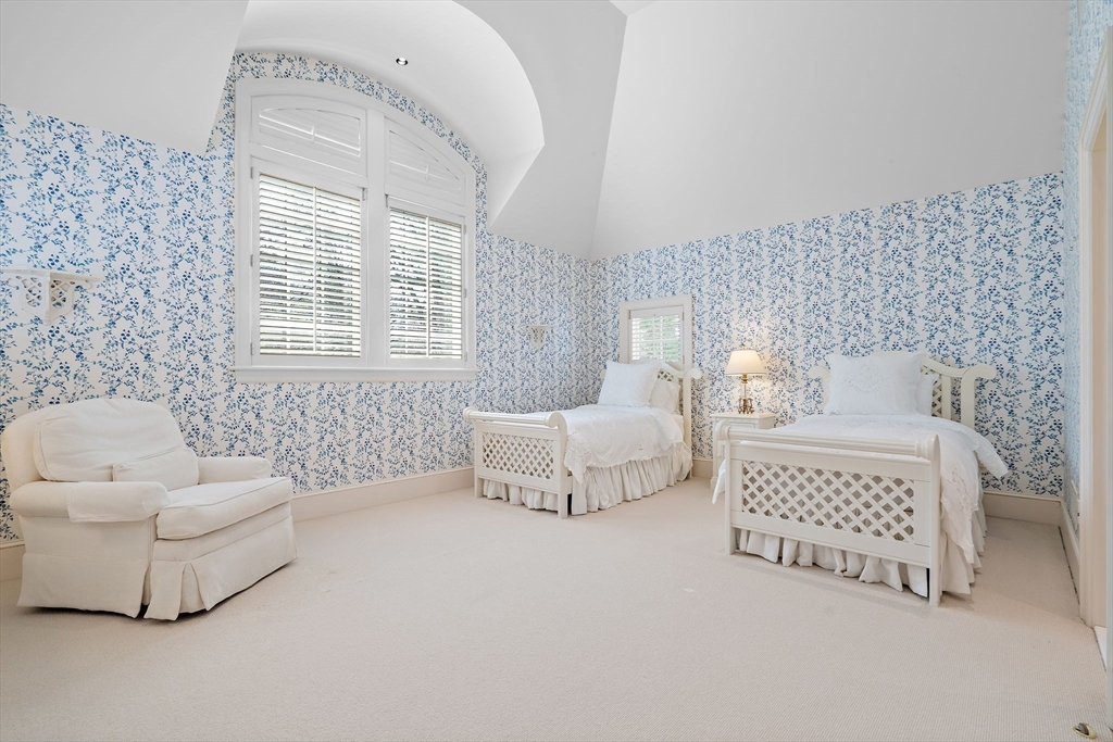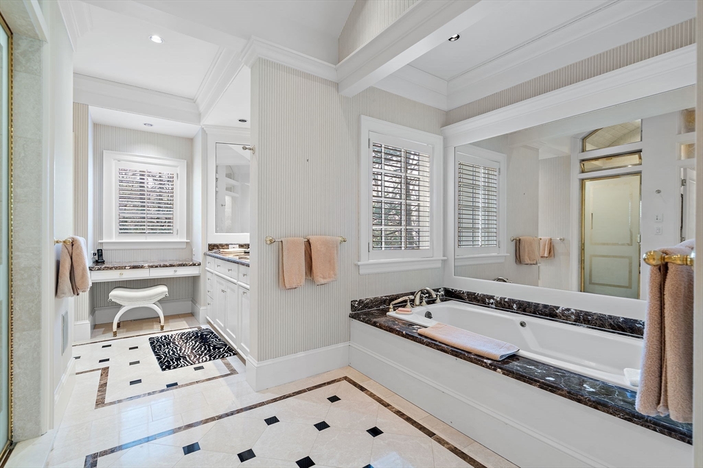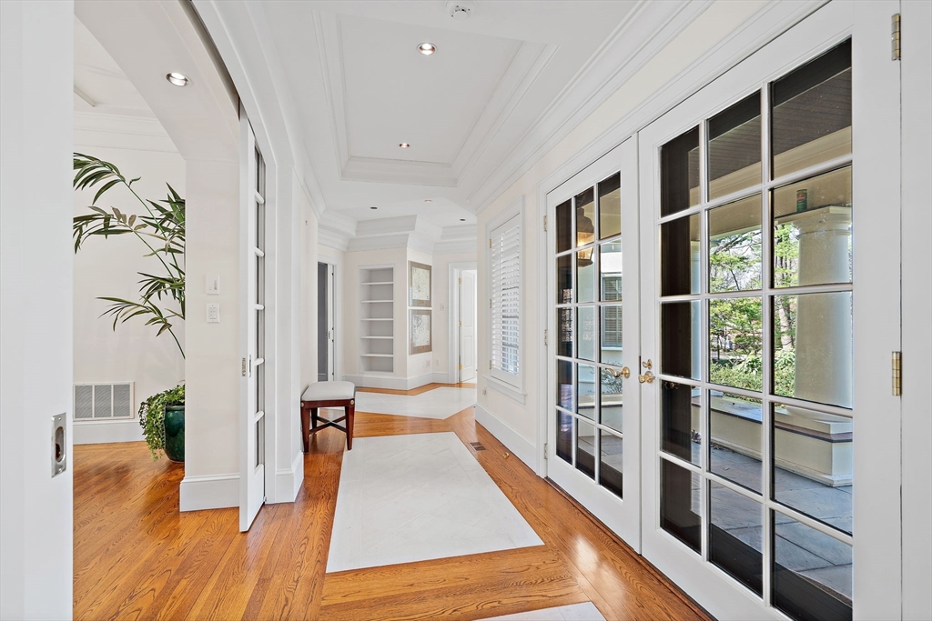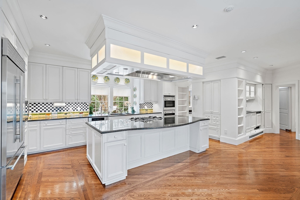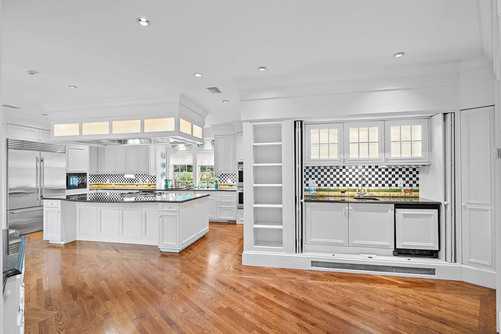 Nestled on a lush 60,000+ square foot lot just nine miles from Boston, this exceptional custom-designed home offers the feel of a private retreat with striking architectural design. Thoughtfully arranged with two wings set at a 30-degree angle, the layout captures beautiful views of the sprawling gardens and tranquil courtyards throughout.One wing features a luxurious primary suite with a circular study, spacious bedroom, sitting room, and elegant bath with dual dressing rooms and walk-in closets. The opposite wing is designed for everyday living and entertaining, offering a chef’s kitchen, breakfast room, walk-in pantry, wet bar, laundry, half bath, mudroom, and three-car garage. Coffered ceilings, walls of windows, and a warm, inviting family room highlight the home’s craftsmanship, while the open floor plan allows each space to flow seamlessly. A rare and distinctive property that must be experienced to fully appreciate its beauty and privacy.