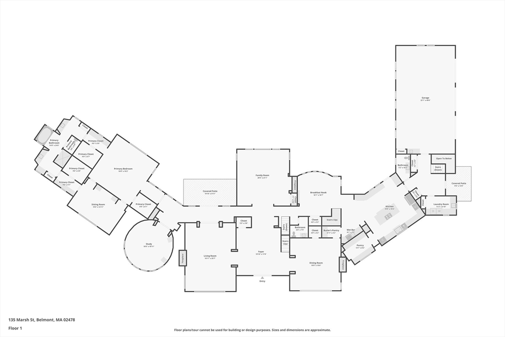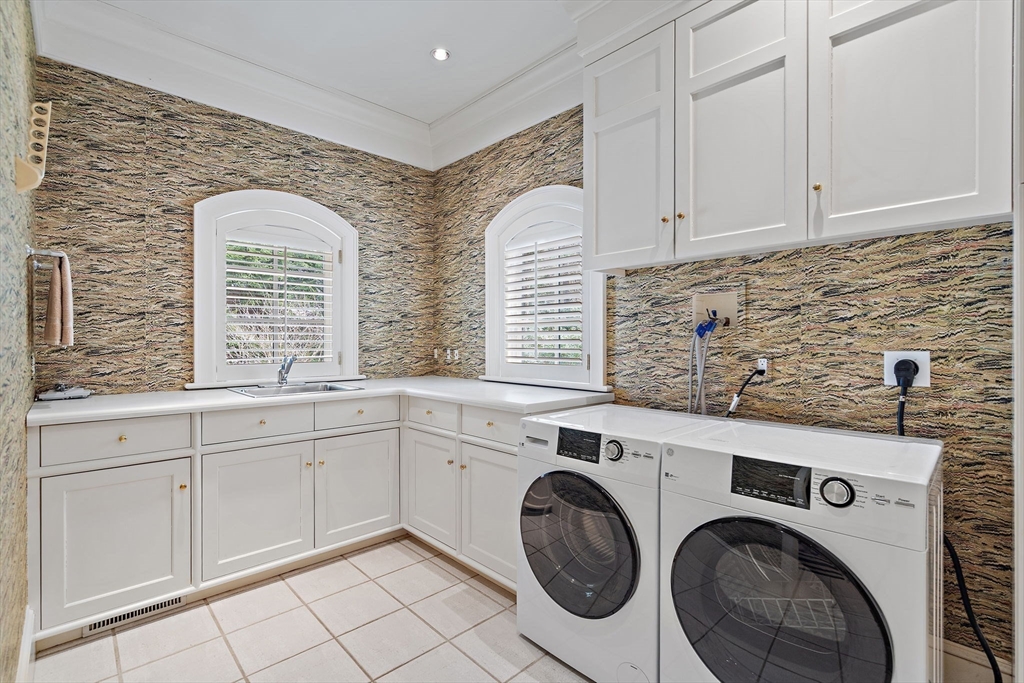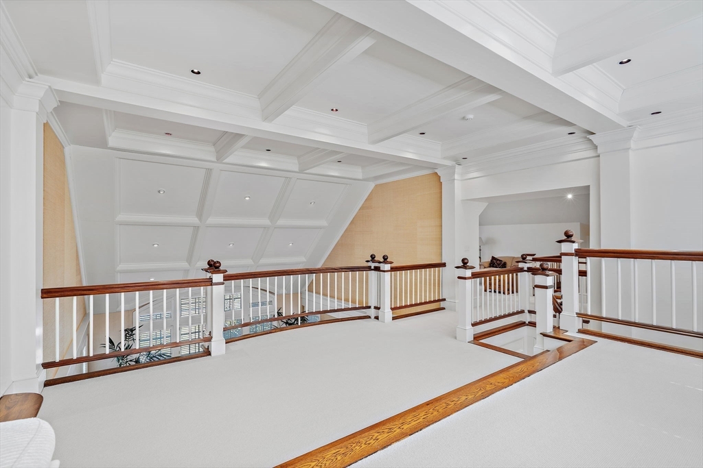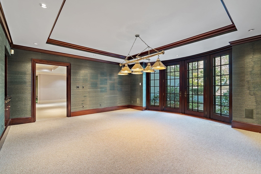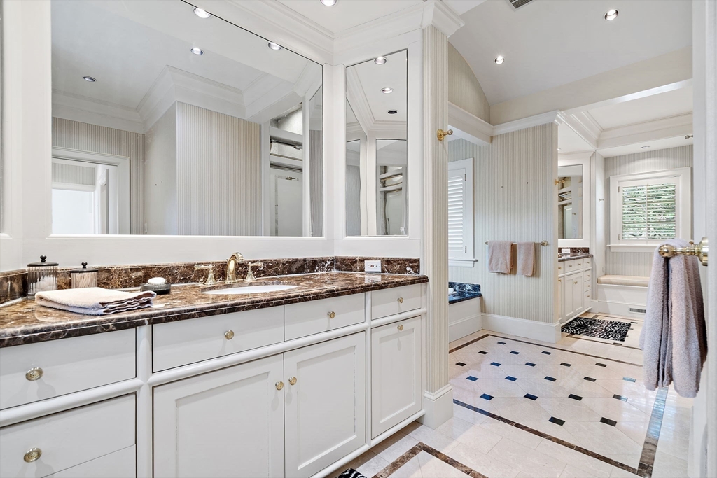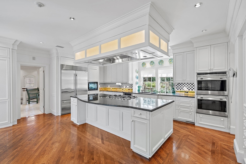 Nestled on a lush 60,000+ square foot lot just nine miles from Boston, this exceptional custom-designed home offers the feel of a private retreat with striking architectural design. Thoughtfully arranged with two wings set at a 30-degree angle, the layout captures beautiful views of the sprawling gardens and tranquil courtyards throughout.One wing features a luxurious primary suite with a circular study, spacious bedroom, sitting room, and elegant bath with dual dressing rooms and walk-in closets. The opposite wing is designed for everyday living and entertaining, offering a chef’s kitchen, breakfast room, walk-in pantry, wet bar, laundry, half bath, mudroom, and three-car garage. Coffered ceilings, walls of windows, and a warm, inviting family room highlight the home’s craftsmanship, while the open floor plan allows each space to flow seamlessly. A rare and distinctive property that must be experienced to fully appreciate its beauty and privacy.