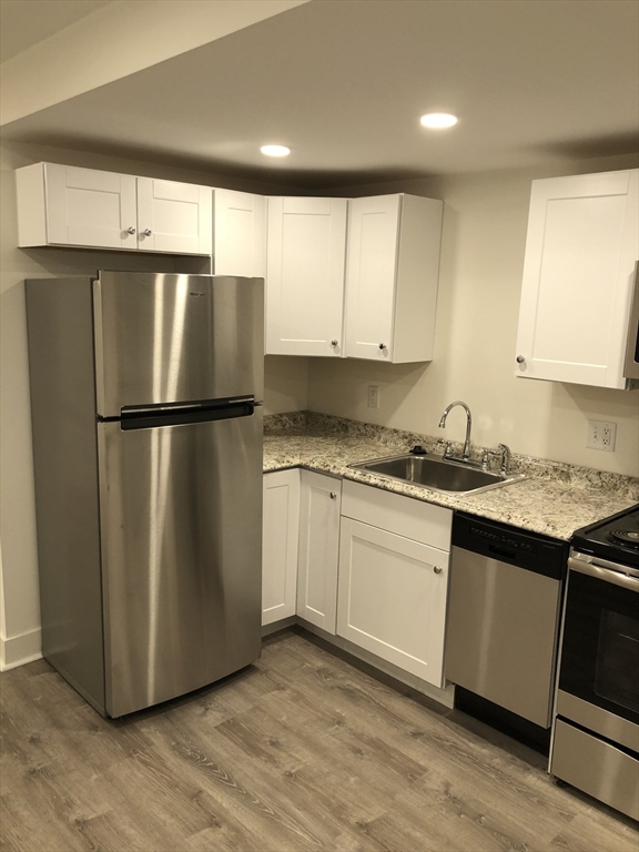Newly renovated one-bedroom apartment in Bay Village available September 1. This spacious and quiet garden-level unit features large south-facing windows that bring in excellent natural light. The apartment offers a modern open layout with a renovated kitchen equipped with stainless steel appliances, including a dishwasher and over-the-range microwave. Additional highlights include a side-by-side washer and dryer, luxury vinyl plank flooring, updated electrical and plumbing, and a beautifully renovated bathroom. Generous closet space and hydronic baseboard heat add to the comfort of the home. Enjoy access to a outdoor patio, perfect for relaxing or entertaining. Conveniently located near restaurants, public transportation, and everything Bay Village has to offer.