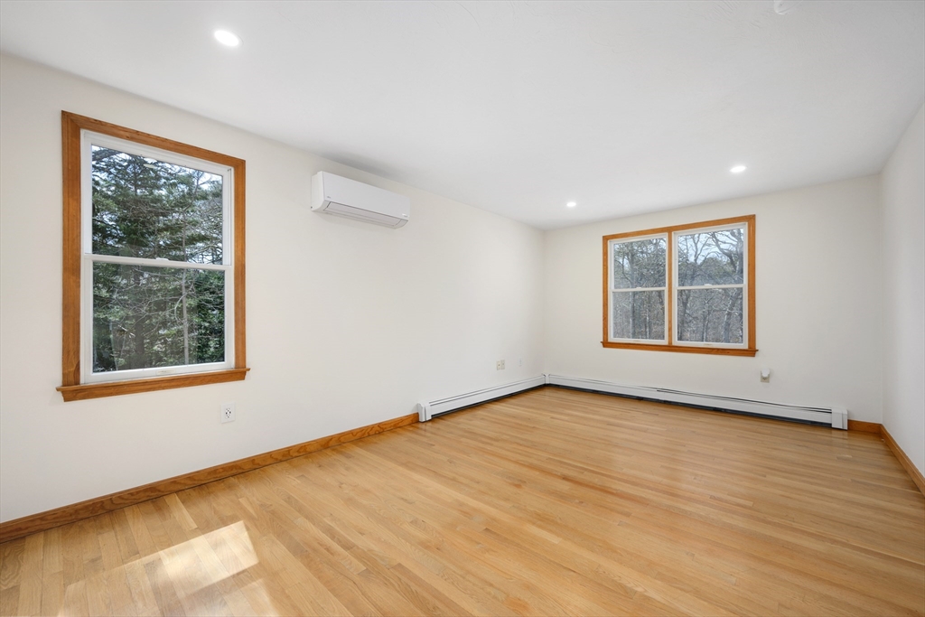 Turn-key and sunny in Brewster! Highlights include a modern floor plan with soaring ceilings and skylight in the living area. The freshly updated kitchen features stone countertops, stainless steel appliances and brand new refrigerator and gas range. This house boasts three generously-sized bedrooms, including a first floor primary with shared ensuite. It sits up and back from the street with an expansive, flat backyard. Centrally located for Cape Cod Bay, the trails and ponds of Nickerson State Park, and shopping. This sweet home is ready for year-round living and weeks of summer enjoyment.