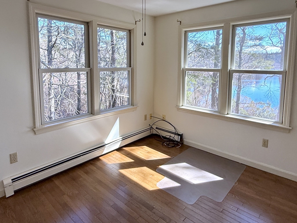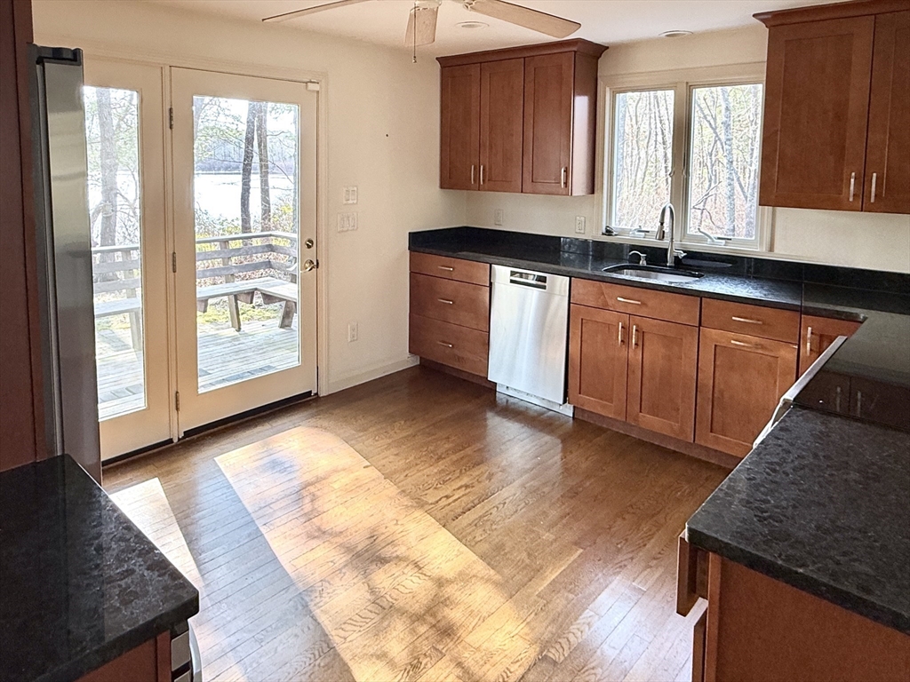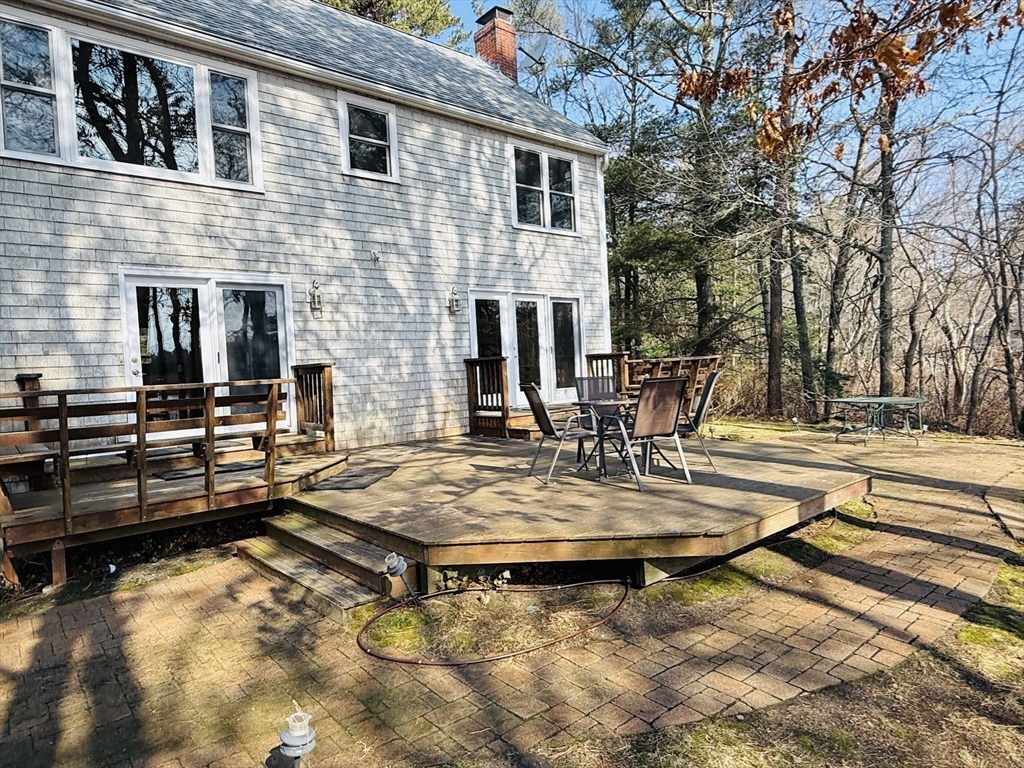 Settled on Shallow Pond on a quiet cul-de-sac, renovated 8 years ago, 3-bed 2 full bath home offers privacy and stunning pond views. Open kitchen & dining layout features cherry cabinets, granite countertops, stainless steel appliances. A front-to-back living room with working fireplace provides a warm, inviting space with more picturesque pond views. Sliders lead to a patio & deck overlooking the serene setting perfect for relaxing or entertaining. The main bedroom boasts a cathedral ceiling, walk-in closet, and water views, 2 additional bedrooms & full bath complete the 2nd floor. Recent updates include roof, kitchen, windows, hardwood floors, bathrooms, wiring, irrigation system, and a new water filtration system. Complete with a 2-car garage and shed. Enjoy outdoor activities like kayaking, fishing bird watching & ice skating surrounded by Town owned land. Incredible location for a home get away. Move in condition.
