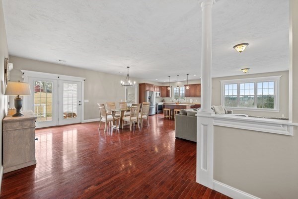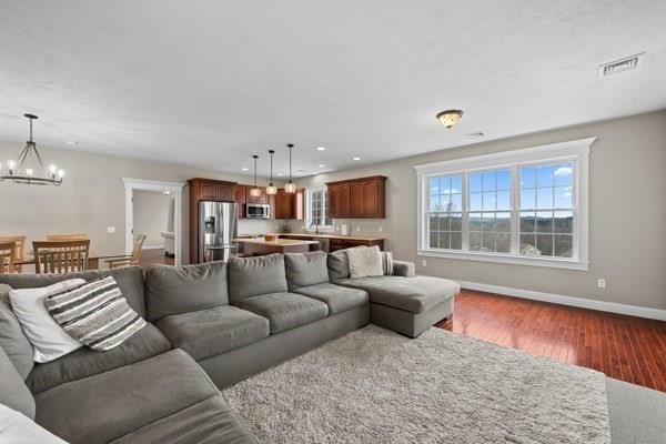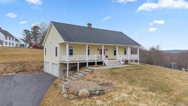 From the moment you arrive, the inviting farmer’s porch sets the tone- an idyllic spot to relax & savor the breathtaking panoramic views. The inside offers refined 1-level living w/ 9 ft ceilings throughout the main flr, exuding an airy, sophisticated ambiance. Durable hardwood & tile flrs flow seamlessly throughout the open flr plan created w/ accessibility in mind, featuring ex-wide halls & doorways, 1st flr laundry, a luxurious walk-in tiled shower in primary en suite, & an additional full bath. The expansive open kitchen/dining/living area is ideal for entertaining or everyday living.The partially finished basement offers additional versatile space w/ new carpet, a mini-split for yr-round comfort, & a 3rd bath already started & fully plumbed for the future. Situated in a desirable commuter-friendly locale, this home blends convenience, comfort & sweeping scenic beauty- truly exquisite! New HVAC & appliances 2016- Roof 2019 -mini split 2021- Water heater 2025- Main bath update 2022