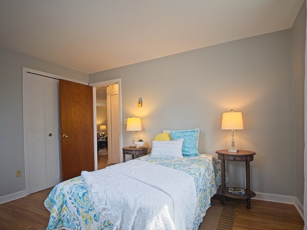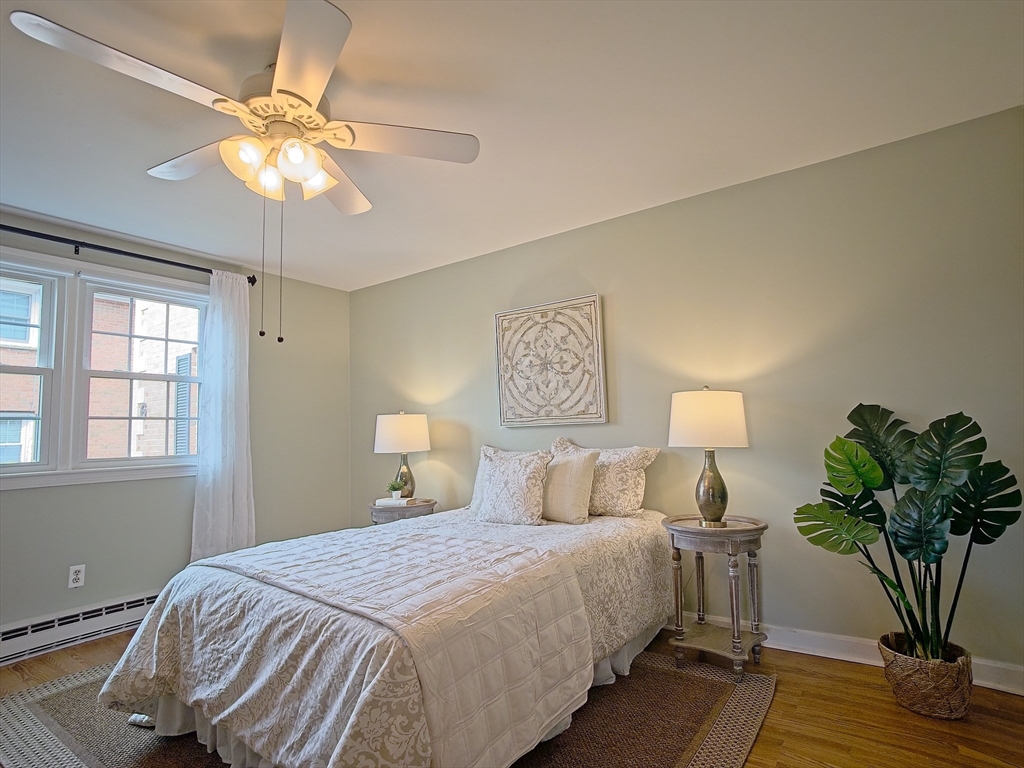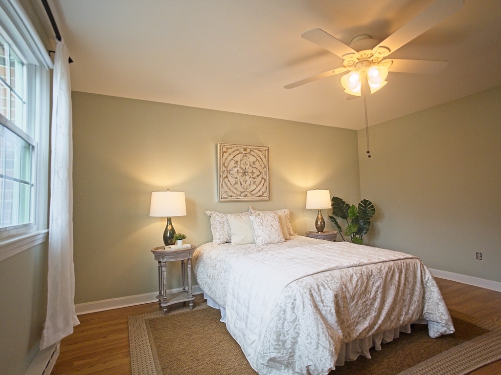 Move-in ready at Mill Pond! This freshly painted 2-bedroom, second-floor condo offers a cabinet-packed kitchen with built-in hutch opening to a welcoming living/dining area with updated lighting. The bath features a new quartz countertop, lighting, and mirror. The windows and refrigerator were replaced in 2022. Both bedrooms offer double closets, with additional deep closets in the hallway and living room for storage. Laundry and extra storage can be found in the basement. Enjoy being close to the town center, rail trail, shopping, restaurants, Logan Express, and scenic Endicott Park. MBTA Bus route 435 is about 1 mile away. Commuter rail can be accessed in Beverly and Salem (about 5 miles away). The nearby highways lead you to Boston, beaches, or the mountains and all that they have to offer.