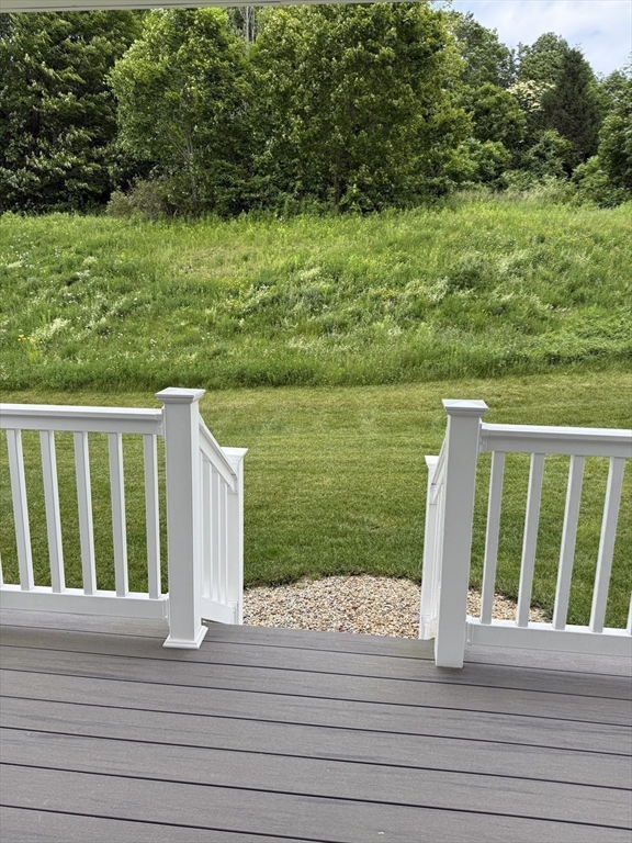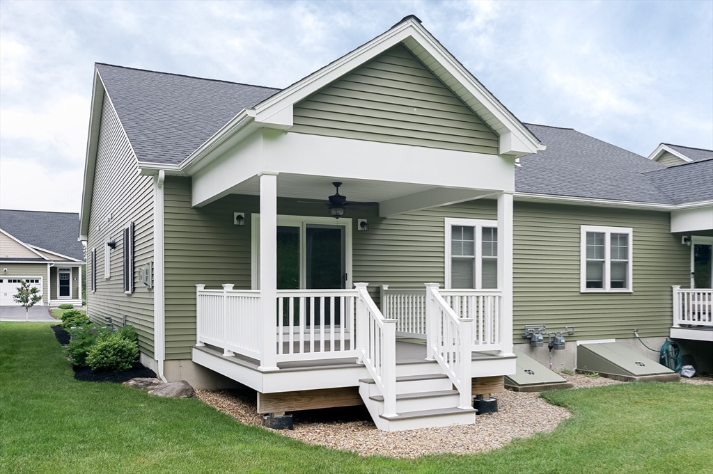Welcome to Spruce Hill, a beautifully maintained 55+ community offering effortless, one-level living in a like-new condo. This inviting home features a dine-in kitchen w/ a center island, granite countertops, SS appliances, & white cabinetry enhanced by crown molding & soft-close details. The kitchen flows seamlessly into a bright and airy living room/Dining room with vaulted ceilings, a propane fireplace, and a slider leading to a covered composite porch/deck—perfect for enjoying serene views of wildflowers & mature trees. The generous primary suite offers abundant closet space & a private bath complete w/ a double vanity, granite counters, and a walk-in shower. A second bedroom provides flexibility as a guest room, office, or den, and is complemented by stylish plank wood flooring throughout. Convenience is key with first-floor laundry & a one-car garage on the main level. The LL includes a 2nd laundry hookup & offers endless possibilities for future finishing or plenty of storage.