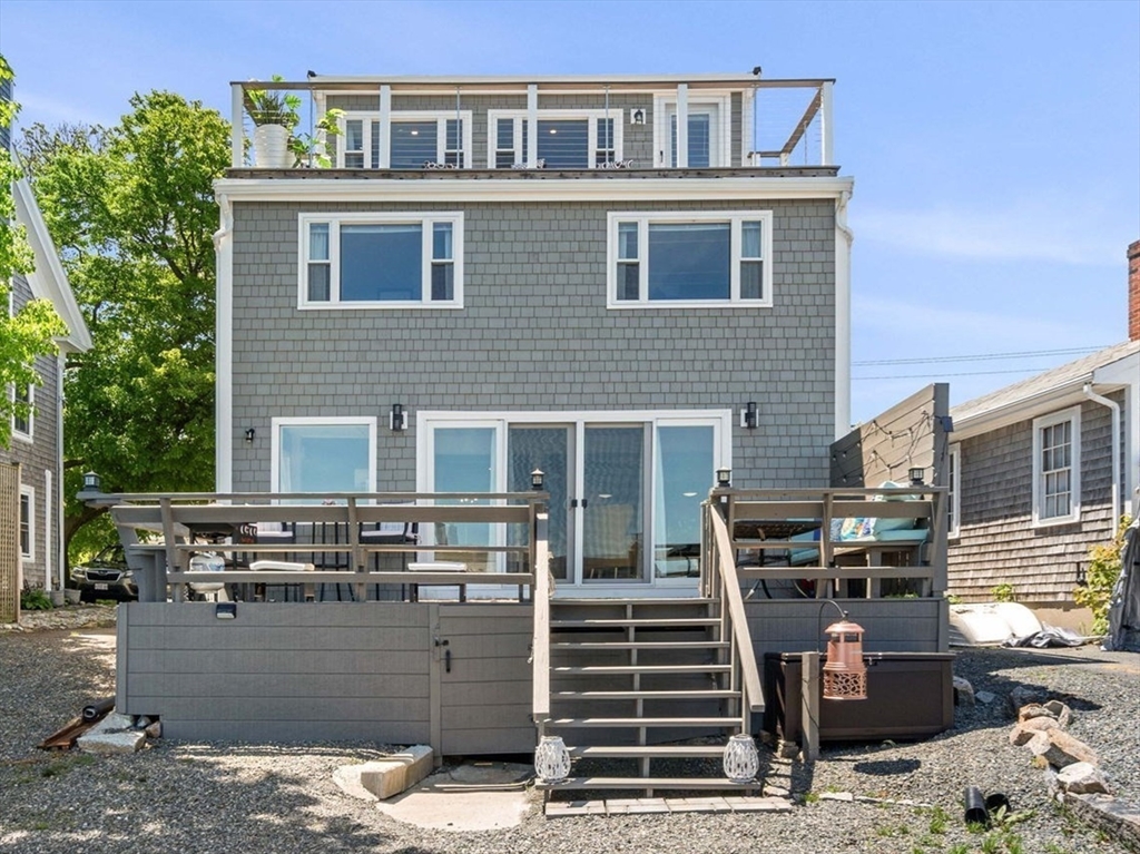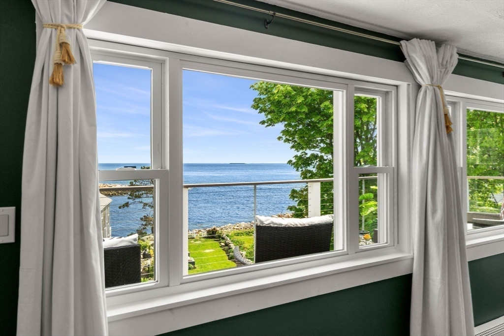 Waterfront living at an exceptional value. Perched above the shoreline with sweeping, unobstructed views of Pigeon Cove and the Atlantic beyond, this completely renovated and furnished home offers a rare opportunity to own a turnkey coastal retreat at a compelling price point. Enjoy the sights and sounds of the ocean from your deck or unwind in the expansive yard just steps to the water. Inside, the sun-drenched open-concept first floor is designed for both everyday living and entertaining. The designer kitchen features nautical details, pantry, and a seamless flow into the living / dining areas, all framed by stunning water views. Upstairs offers a flexible layout with 3 bedrooms, a second family room, and a large laundry room. The top floor is a true sanctuary, dedicated to a luxurious primary suite with panoramic ocean views, a spa-like bath, private deck, and walk-in closet. Waterfront, fully renovated, furnished, and now offered below $2m an incredible value in beautiful Rockport.