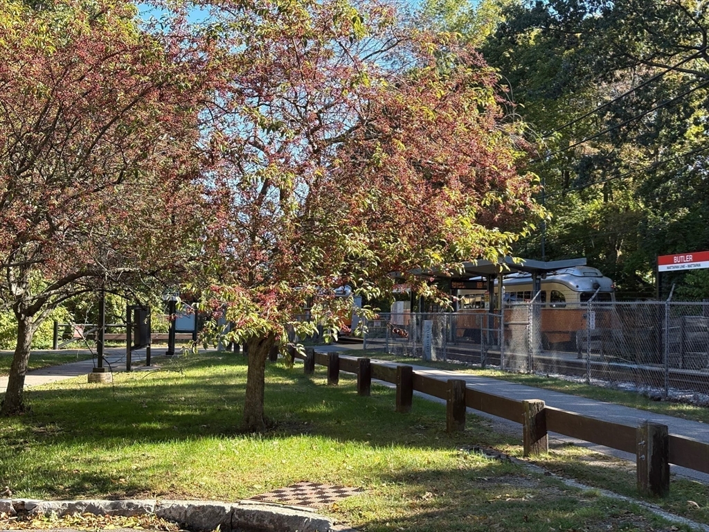FABULOUS Lower Mills/Cedar Grove location 2BR/1BA corner Penthouse rental directly across from the Butler T stop. Available NOW-This unit is a TRUE GEM- tenant pays electric utility only, HOT WATER is included. Sun splashed unit offering an open living area/kitchen concept, fresh polished H/W flooring, additional coat/pantry/linen closets, private balcony and a full size working kitchen. Generous bedrooms with ample closet space and full tile bath round out the living space. Parking is common with ample street parking. Laundry in building, easy public transport access and park/walk/bike trails located within steps of your front door! First month and one month security due at lease signing.