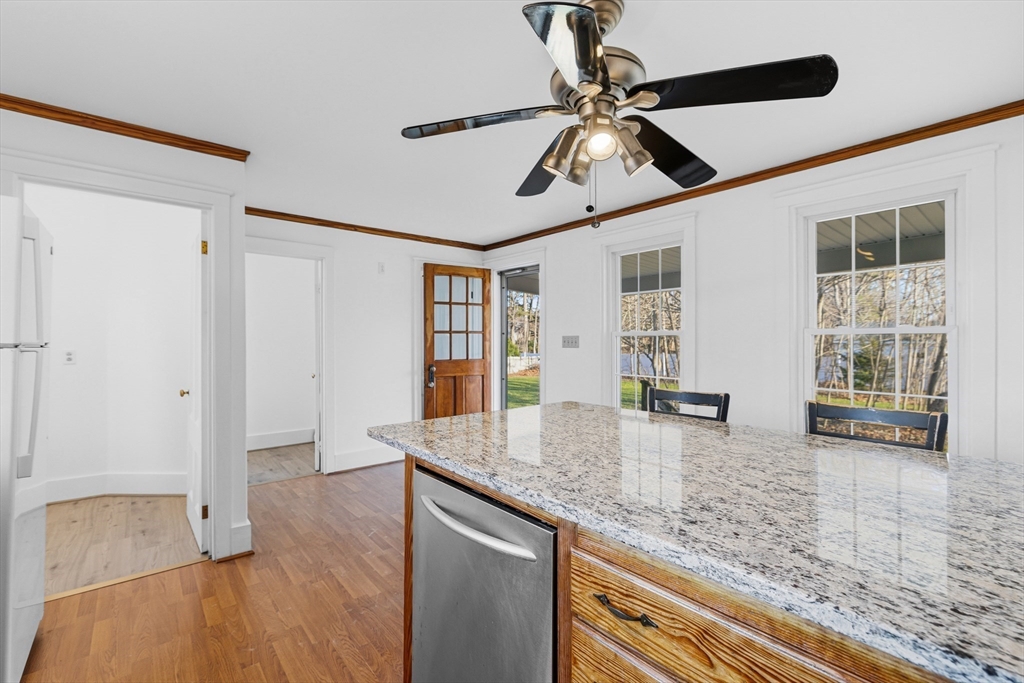 Step inside this timeless 3-story Colonial where early 1900s charm meets thoughtful updates. Currently configured as 5 bedrooms (public record shows 3), the home features beautifully refinished hardwood floors in the main living areas and bedrooms, with durable luxury vinyl plank throughout high-traffic spaces for a modern touch. Two renovated bathrooms complement a kitchen with new granite countertops and refreshed original cabinetry. Boiler is 10 years old and roof approximately 10–15 years old, with a brand-new 5-bedroom Title V septic system (2000-gallon tank). Set on around half an acre with parking for 4–6 vehicles and located just minutes from Routes 106, 24, and 495. Nearby schools, library, grocery and playground are all within a short walk along sidewalks, combining convenience with space and charm.