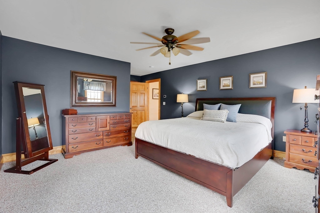 Highly Sought After Location! PRISTINE Custom Built, ONE OWNER Colonial boasts lush green grass, sunsets and scenic views! Beautiful two story foyer opens to a spacious kitchen, ss appliances, granite c tops, breakfast bar, pantry & dining area opens to living rm. A quaint & cozy great rm highlighting a massive fieldstone fireplace w/ cathedral, shiplap ceilings & gleaming hdwd flrs. Formal dining rm w/ hdwd flrs, fantastic mud rm, half bath & 9 ft ceilings throughout round out the first flr. Second flr features generous size primary bdrm along with w/in closet & primary bth w/jacuzzi tub. Two bdrms and a massive 4th bdrm & or in law suite awaits you with tandem bath- separate staircase to this area & laundry rm. Lower level offers a family rm to patio dining, exercise rm w/ french drs to family rm, full bth and home office. Fantastic deck dining, patio dining and lots of space for backyard FUN! Great 3 car attached garage w/extra storage space, perfect for multi-generational living!!
