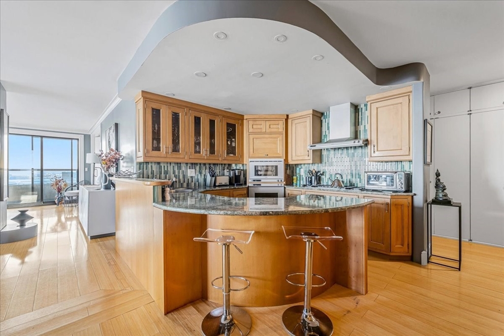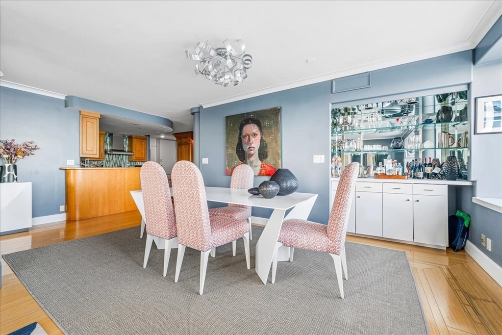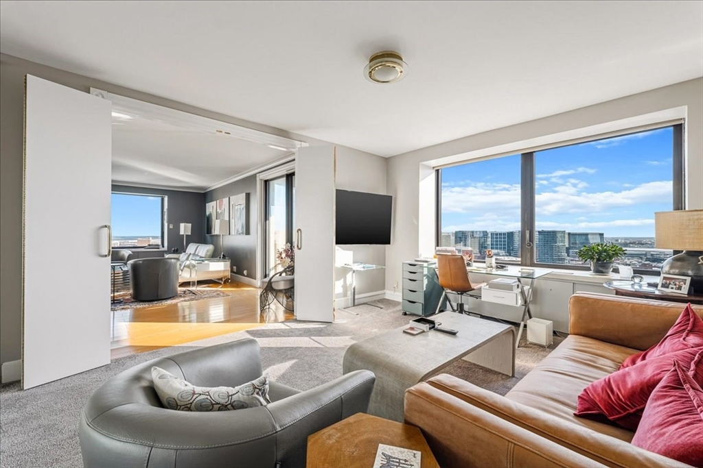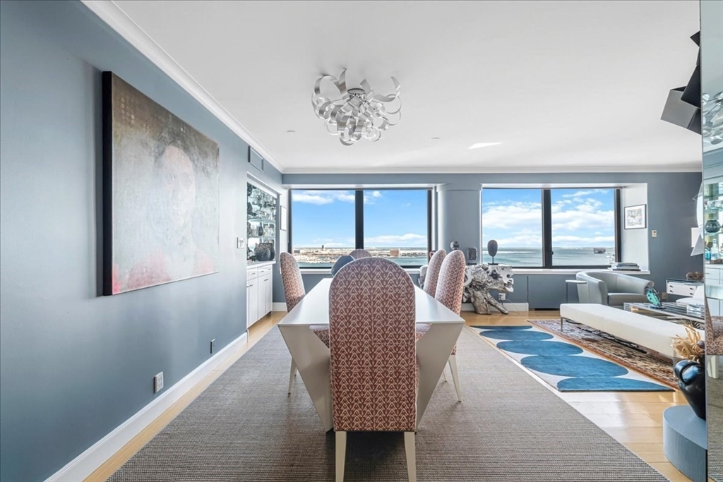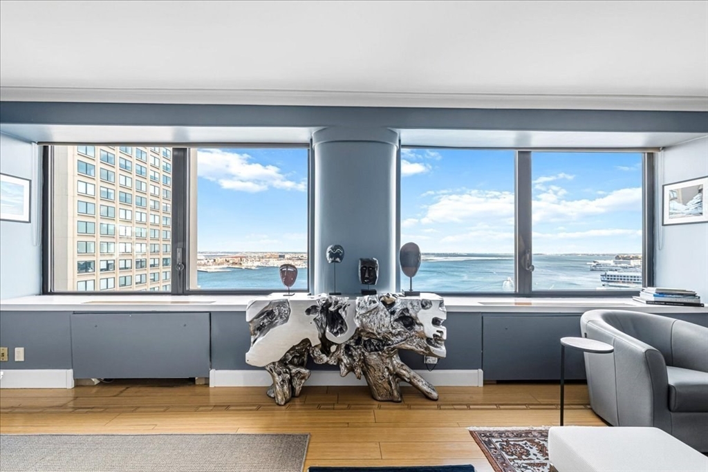 This beautifully designed Harbor Tower 2–3 bedroom home offers nearly 2,000 square feet of open living space, combining modern elegance with breathtaking views of historic Boston Harbor and the vibrant Seaport. Expansive windows fill the residence with natural light, while the kitchen features refined millwork and fully integrated appliances. The primary bedroom is accessed through a hallway lined with custom-designed closets, creating a sense of privacy and sophistication. Positioned on a southeastern corner, the home enjoys stunning sunrise views over the harbor along with glowing evening reflections. Residents benefit from premium amenities including concierge services, on-site management, rental parking, and a seasonal heated pool with grilling areas set within beautifully landscaped grounds.