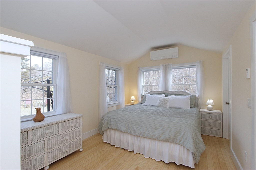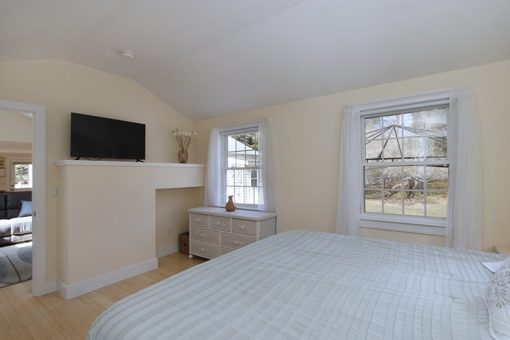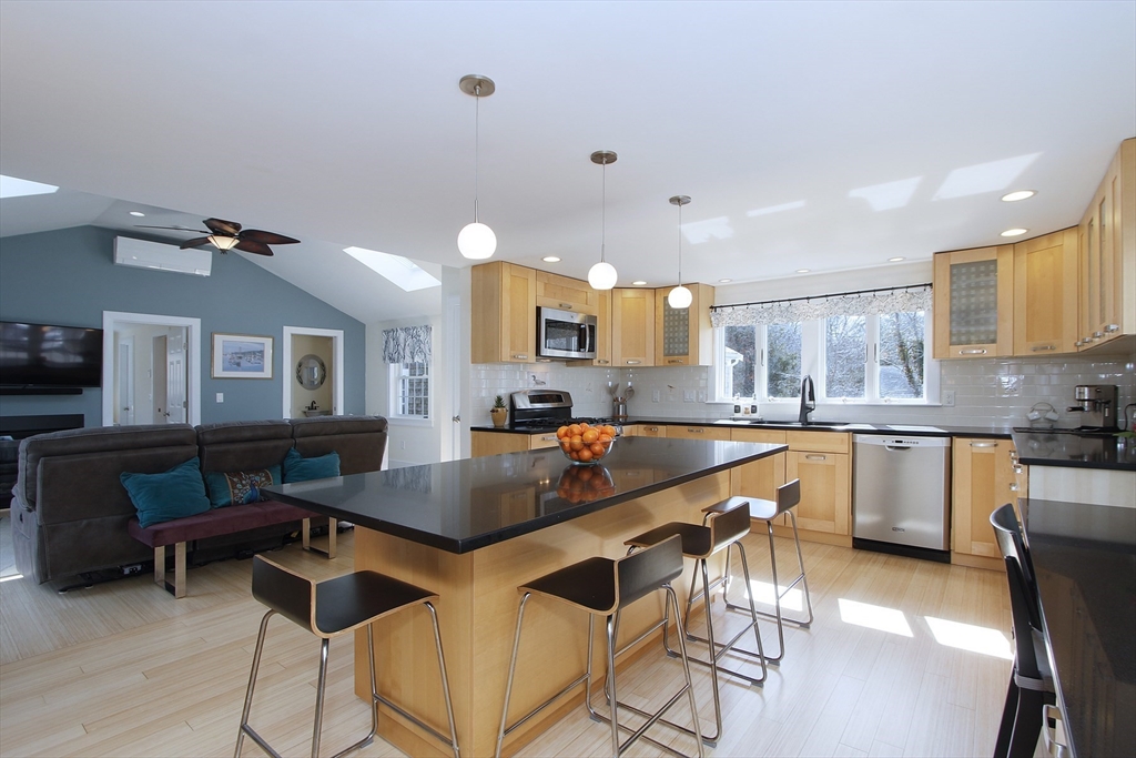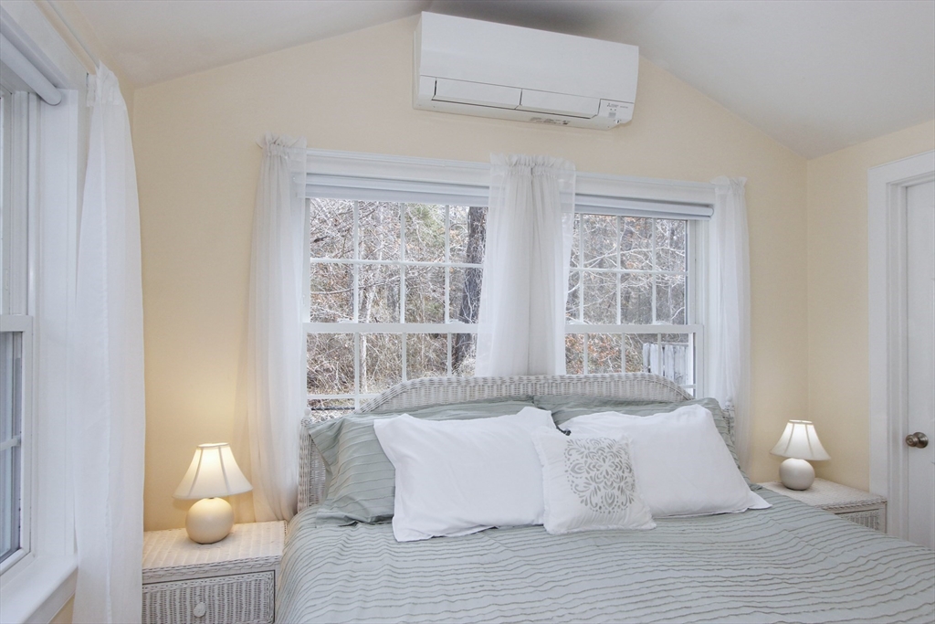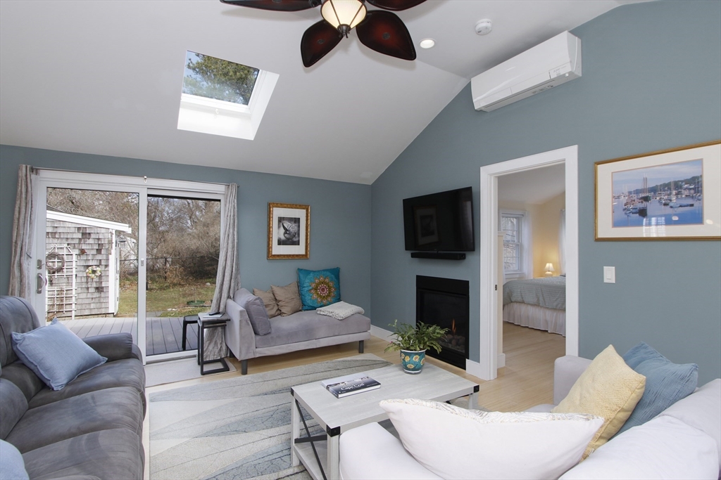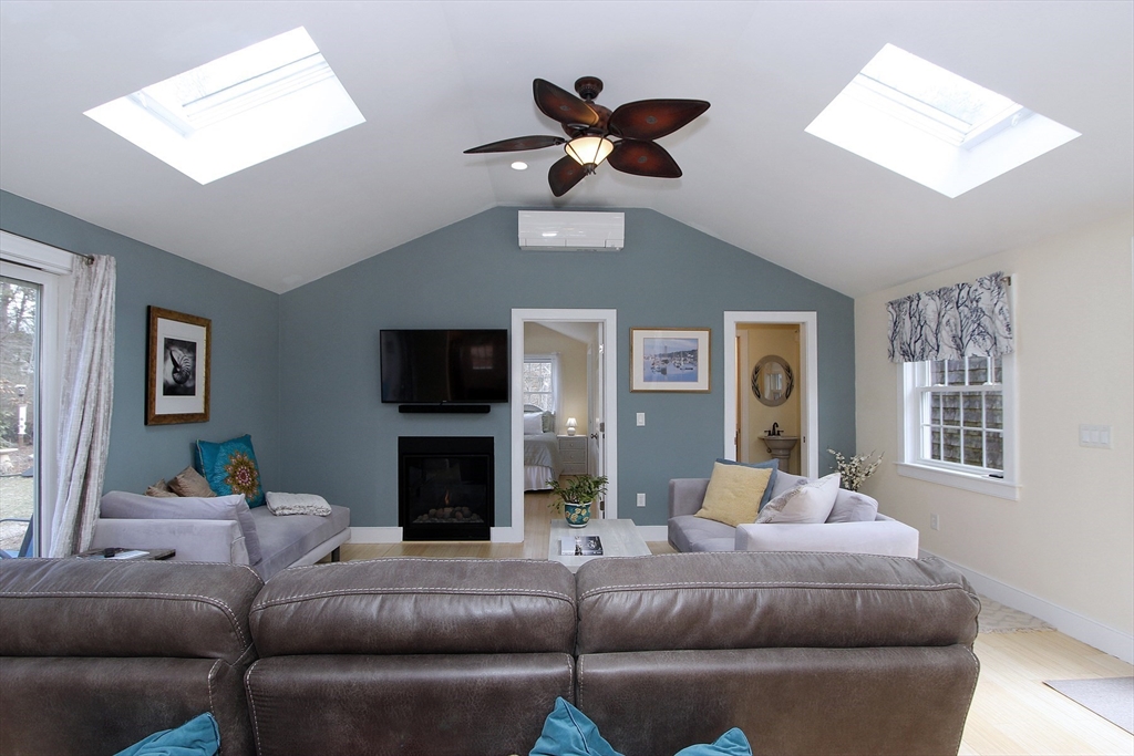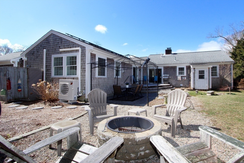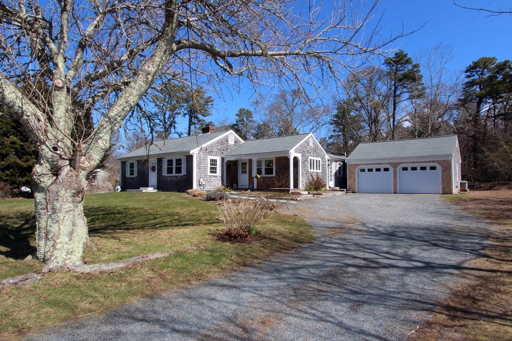Renovated Brewster home offering easy one-level living with a bright, open layout. This 3-bedroom, 2-bath property has been extensively updated, including a 2007 addition. Features include bamboo & oak flooring, custom kitchen with center island, cathedral-ceiling family room with gas fireplace, & a cozy living room with a wood-burning fireplace. Primary suite offers a walk-in closet & private bath with jetted tub. Dining area opens to the kitchen & overlooks the backyard. Lower level includes a finished, heated bonus room & workshop. Energy-efficient systems include owned solar panels, radiant heat, a Navien gas boiler with tankless hot water, and mini-splits for AC and heat. Enjoy the private, fenced backyard with a large Azek deck, fire pit & outdoor shower. Detached 2-car garage offers storage above and a 30-amp outlet for EV/RV charging. Must be seen in person to fully appreciate. Ideally located on a quiet street, close to beaches, bike path and downtown Brewster.