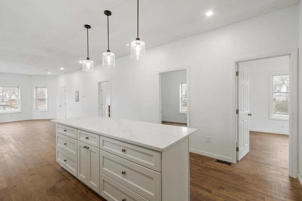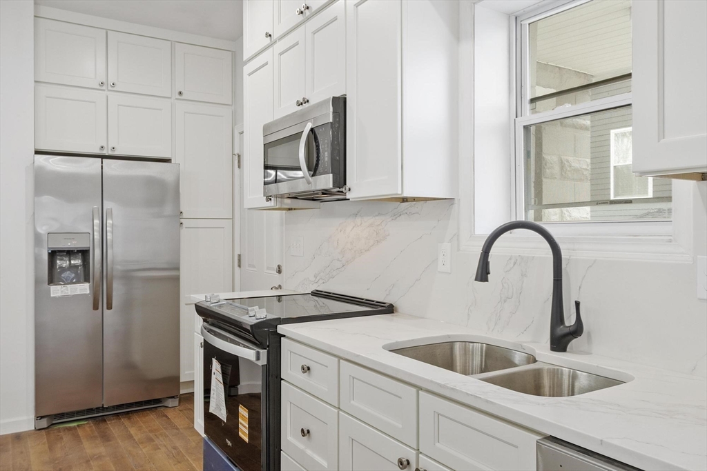 Experience the perfect blend of style and comfort in this stunningly remodeled 3-bedroom, first-floor apartment in North Andover. Step into the modern open-concept kitchen, where sleek quartz countertops, stainless steel appliances, and a spacious center island create a dream space for cooking and entertaining. The apartment is bathed in natural light, accentuating the elegance of the rich wood floors throughout. Unwind in the spa-inspired tiled bathroom, designed to bring relaxation into your daily routine. With a brand-new gas heating system, you’ll stay cozy and comfortable all year round. Outside, enjoy the convenience of off-street parking, and inside, take advantage of washer and dryer hookups available in the basement. Nestled near shopping, dining, and parks, this bright and inviting home offers both modern living and everyday convenience. Don’t miss the chance to make it yours.