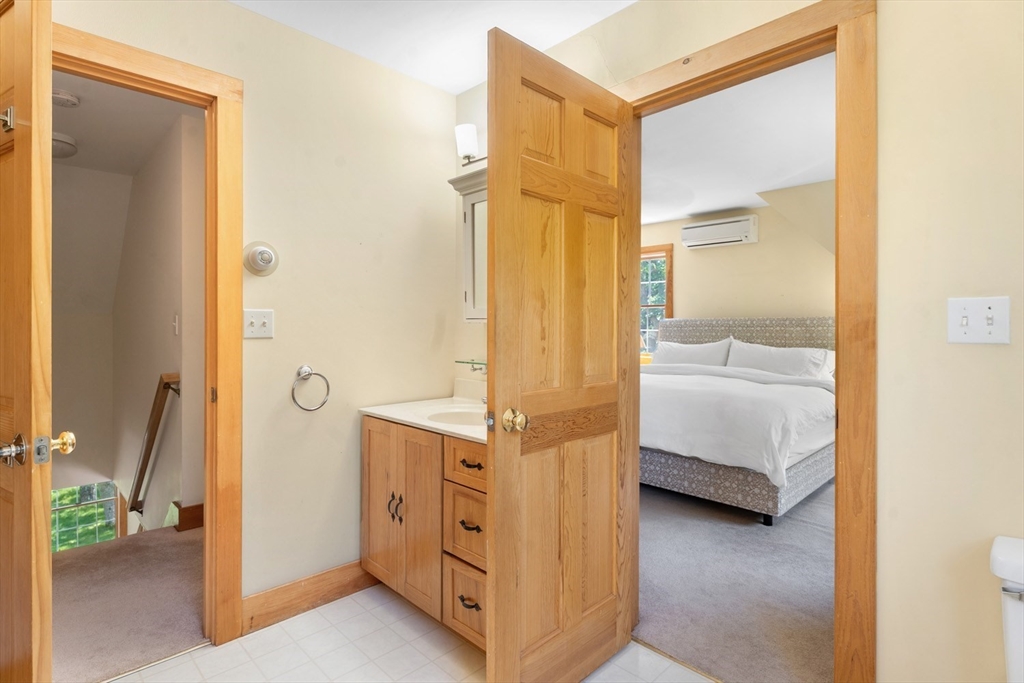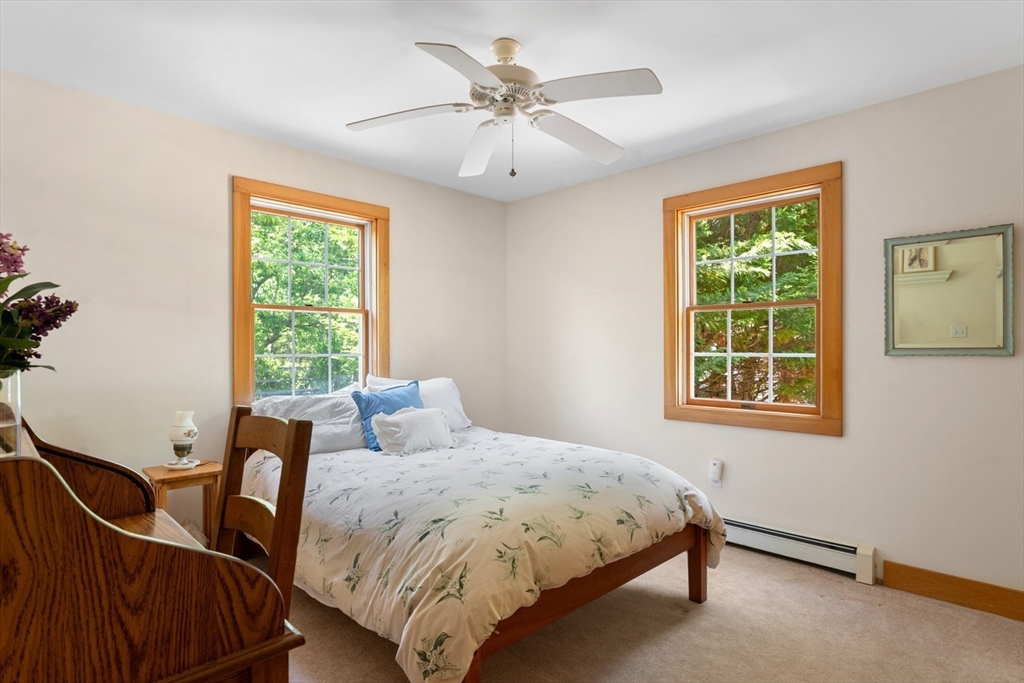 Tucked away on 1.6 wooded acres in West Tisbury, this classic Cape-style home offers both privacy and convenience, with easy access to the charm of Up-Island and the amenities of Down-Island. Located on a paved road near Long Point Beach, it also includes coveted access to Lambert's Cove Beach. The bright, open interior features a living and dining area with a wood-burning fireplace, a kitchen with a center island, and sliding doors that open to a spacious back deck—ideal for outdoor entertaining. The first floor includes a bedroom and a full bathroom, while the second floor offers two large bedrooms and a shared full bathroom. A full-height, dry basement provides excellent storage and potential for future expansion. The landscaped grounds create a picturesque environment, making it a perfect option for year-round living or rental investment.