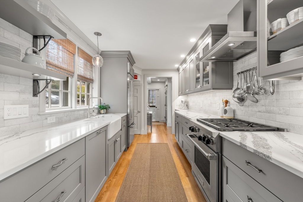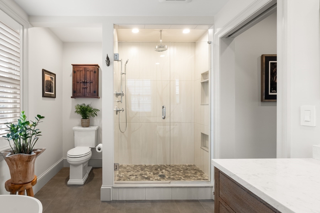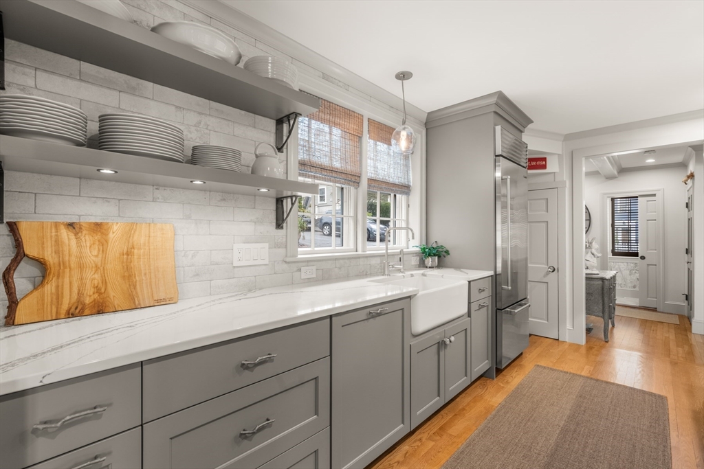 In Old Town and on the Harbor, where every day feels extraordinary! Imagine morning walks around Fort Sewall, harbor views stretching to the islands, and evenings that begin with sunset and end with the soft rhythm of the waves. Enjoy coffee on the patio as the ocean laps the rocky shoreline, stroll to nearby restaurants and the market, or carry your kayak through the basement door and launch directly from the adjacent beach. This mint-condition 1870s seaside charmer has been thoughtfully restored from top to bottom, blending historic detail with modern ease: 200-amp service, new 3-zone hydronic HVAC, 3 luxe baths, and a reimagined second floor with an organized laundry featuring soapstone counters and custom cabinetry. The kitchen shines with Wolf, Sub-Zero, and Miele appliances, while new double-hung windows frame the water views. Custom storage is seamlessly integrated throughout. Off-street parking completes this rare, turnkey offering in Marblehead’s historic harbor.