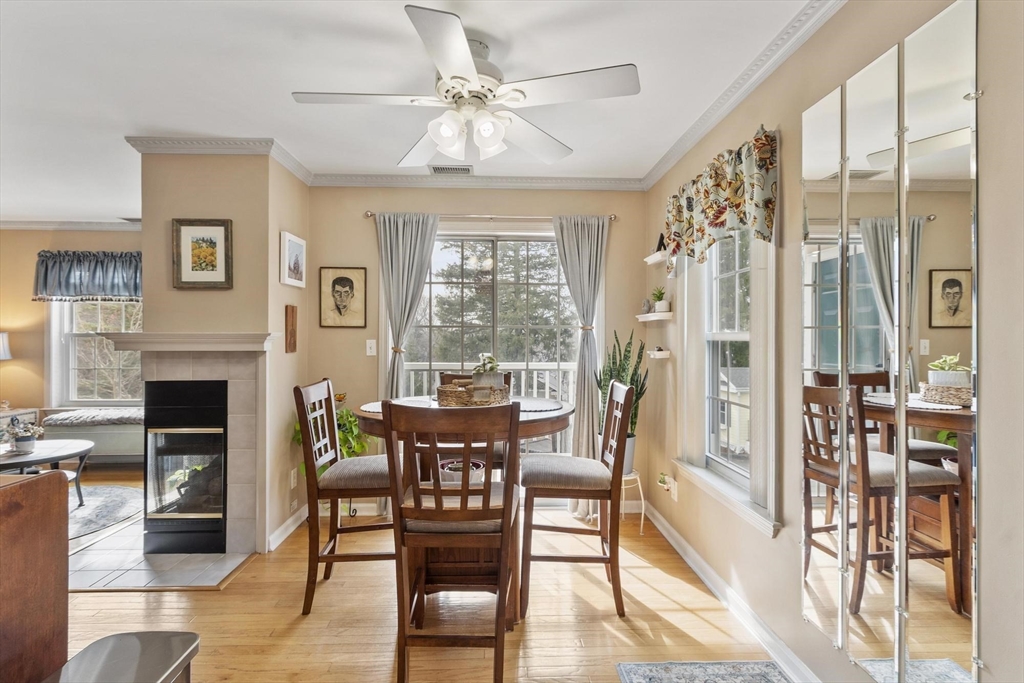 PRISTINE & BEAUTIFULLY MAINTAINED, this 1-bedroom, 1.5-bath end-unit townhome offers exceptional comfort and style in the highly desirable Summit Village in Reading. Formerly the model unit, this home showcases thoughtful upgrades and a well-designed layout throughout. The first floor features hardwood floors and a bright, open living space with a center gas fireplace. The oversized bedroom provides a peaceful retreat, complete with custom built-ins and generous closet space. Enjoy the convenience of central air, a one-car garage, and low condo fees for truly maintenance-free living. Ideally located just one minute from major routes and approximately ¾ mile to Reading center & commuter rail. . A private deck is the perfect spot for morning coffee or evening relaxation. This is a rare opportunity to own a standout unit in a prime location.