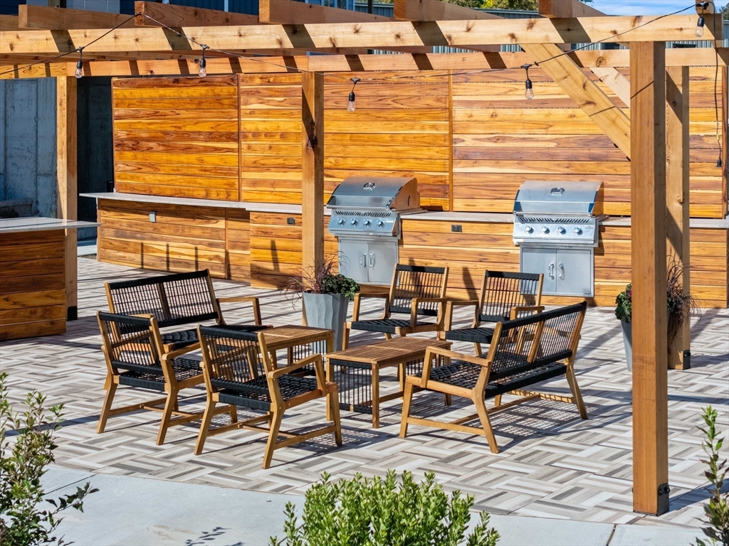 The luxury boutique condominiums at RIVERWALK SALEM offer the best in modern single-level living on the North Shore. This spacious new three-bedroom, two-bath condo features oversized windows, high ceilings, top-of-the-line finishes, plentiful amenities, and personalized finishes with a signature designer aesthetic. The large Chef's kitchen boasts stainless Bosch appliances, custom cabinetry, and quartz countertops and backsplash and opens into the spacious living and dining room with European hardwood floors throughout. Relax in the primary suite with walk-in closet, smart bidet, seamless tiled shower, double vanity and heated flooring. Lifestyle amenities include indoor heated parking, elevator, Clubroom Lounge, state-of-the-art fitness center, and Riverside Outdoor Kitchen/Patio. Escape to your own private oasis only a stone's throw from the action of historic downtown Salem.