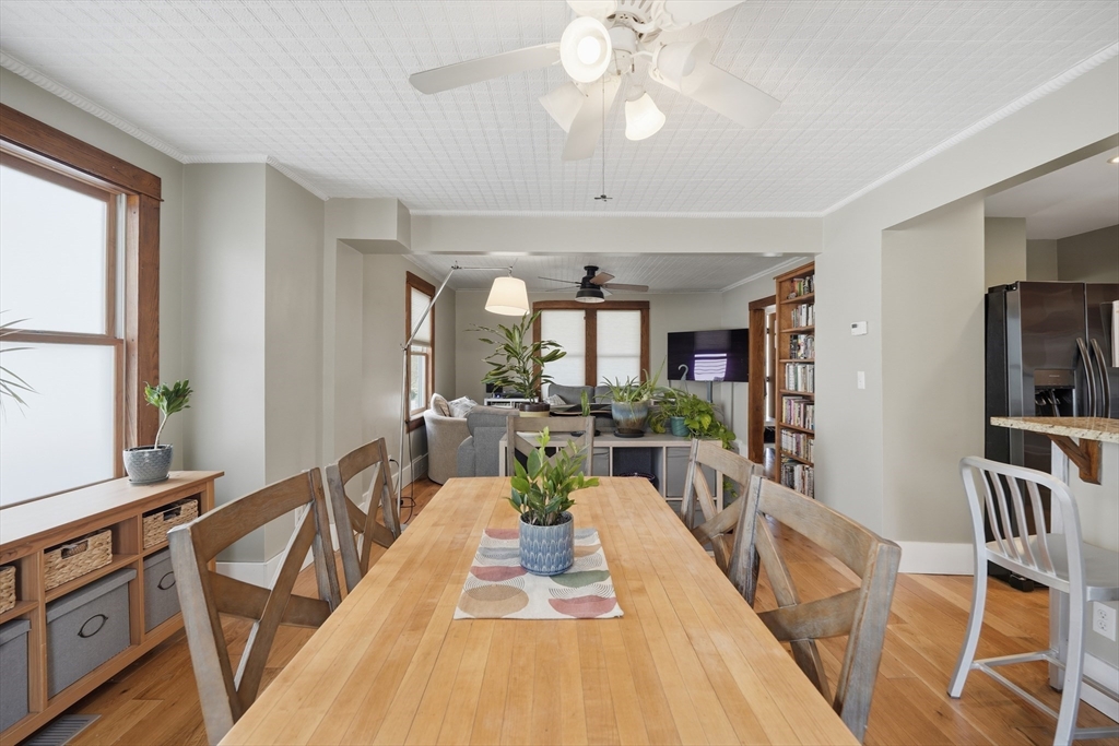 TASTEFULLY UPDATED FARMHOUSE LOCATED A STONES THROW FROM CHILDS PARK. This well-maintained, charming home offers a bright and inviting open layout, ideal for comfort and everyday living. The kitchen features ample custom shaker cabinetry and workspace, flowing seamlessly into the dining room for friends and family gatherings. The stately wood floors and the elegant tin ceilings add a timeless architectural charm and character that's hard to replicate. Enjoy generously sized bedrooms updated baths, and plenty of natural light throughout. The first and second floor porches are a nice touch, as is the deck overlooking the manageable back yard. Don't miss this opportunity to make this centrally located farmhouse your new amazing home!