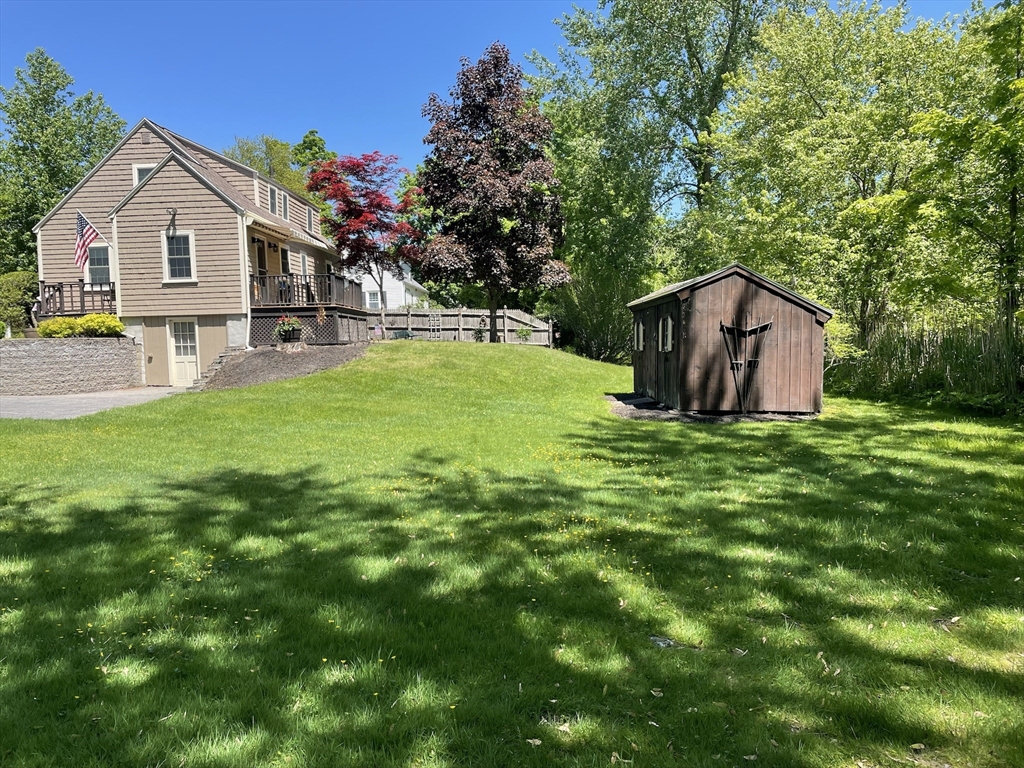 Let's start with the easy commute to Boston. Then follow up with an oversized and private lot at the end of a quiet dead-end street. Big ticket items such as electrical w new breakers, furnace, central air and hot water heater all have been recently updated. There are Anderson replacement windows throughout the main house and a Sun setter retractable aweing covering the Trex back decking. Front & side stone walkways lead to this charming cape cod home with mature landscaping. Hardwood flooring throughout most of the home. Fireplaced living room. Dining room also has a built-in China cabinet. All 3 bedrooms are generous in size also with hardwood flooring. Walk out basement is partial finished man cave and another room with a closet that would make a perfect 4th bedroom for a teenager. Showings start April 1st