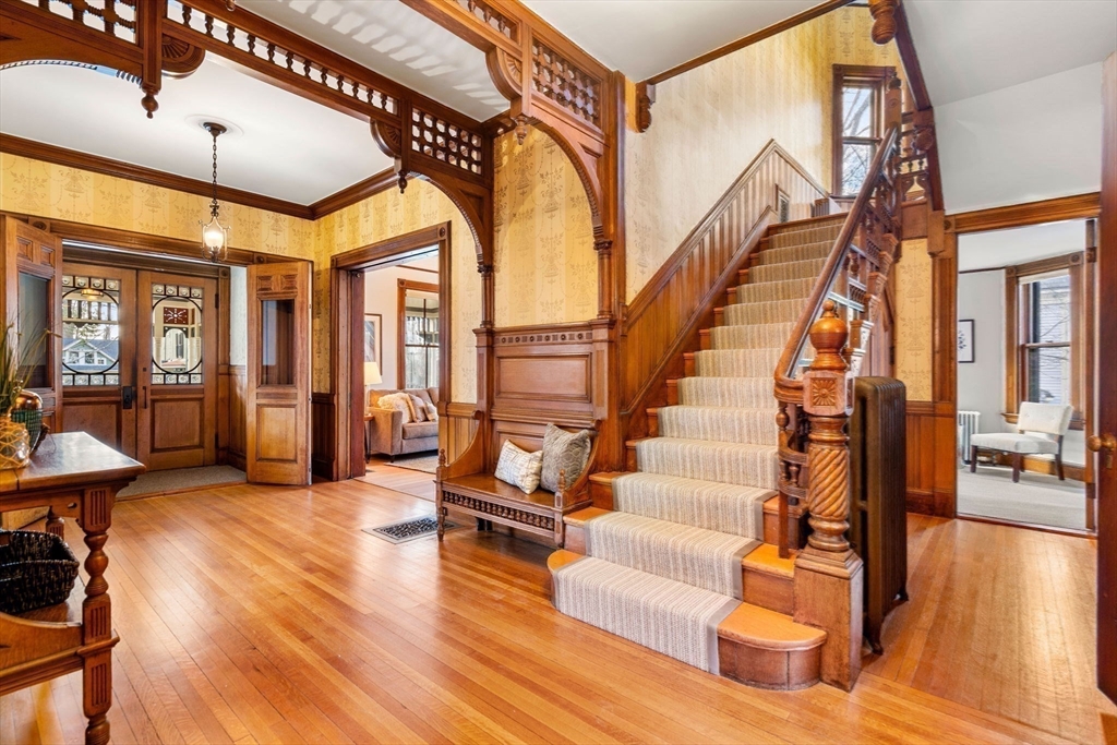 Meticulously restored/fully renovated/DELEADED Victorian set on a tree-lined street in coveted West Newton Hill offers the best of both worlds: infrastructure of new construction + incredible period detail! Since ‘22: bsmt renovated w/state-of-the-art mechanicals, 400amps, office, gym, full bath & endless storage; new roof, re-furbished exterior, weatherproofing; award-winning new baths, updated kitchen, stone retaining wall allowing for level yard, prof’ly landscaped grounds; new 2-car heated garage w/ EV & sunny office/gym above, & more! PLUS the splendor of exquisite original millwork, soaring ceilings, oversized fireplaces & expansive front porch common in the late 1800s. Great layout w/ double parlor LR/FR flowing to large dining room, pantry & eat-in-kitchen w/ glass sliders to deck and yard. Spacious Primary features a spa-like bath w/ all the bells & whistles, custom walk-in closet & sitting area. Walk to Pierce School & WN Square, easy access to Pike, downtown & Cambridge.