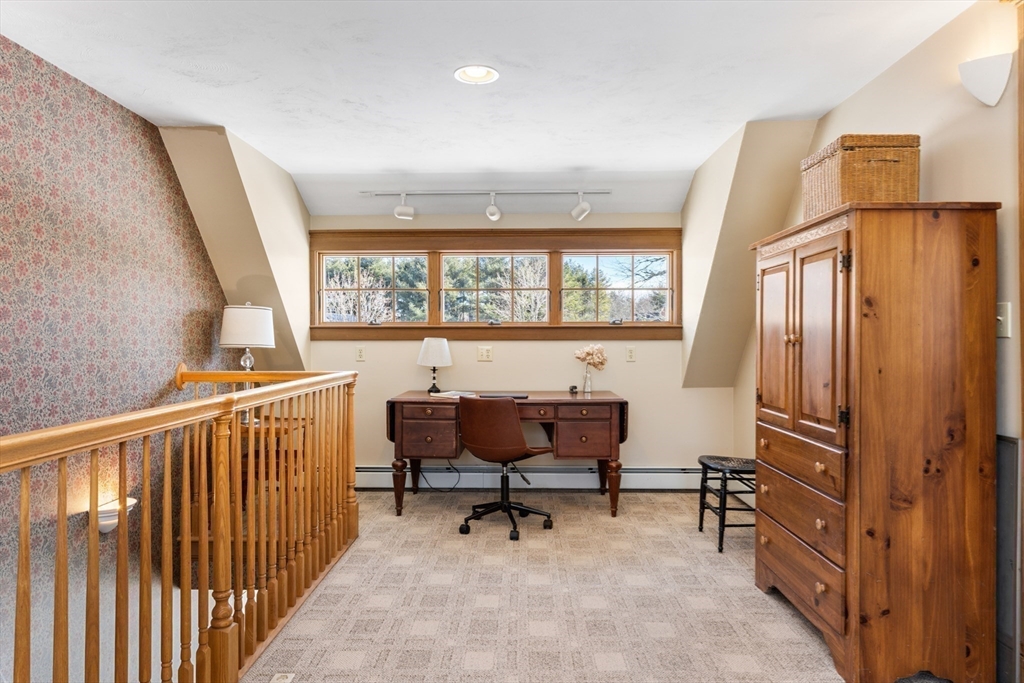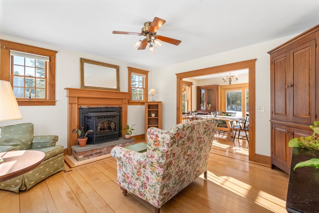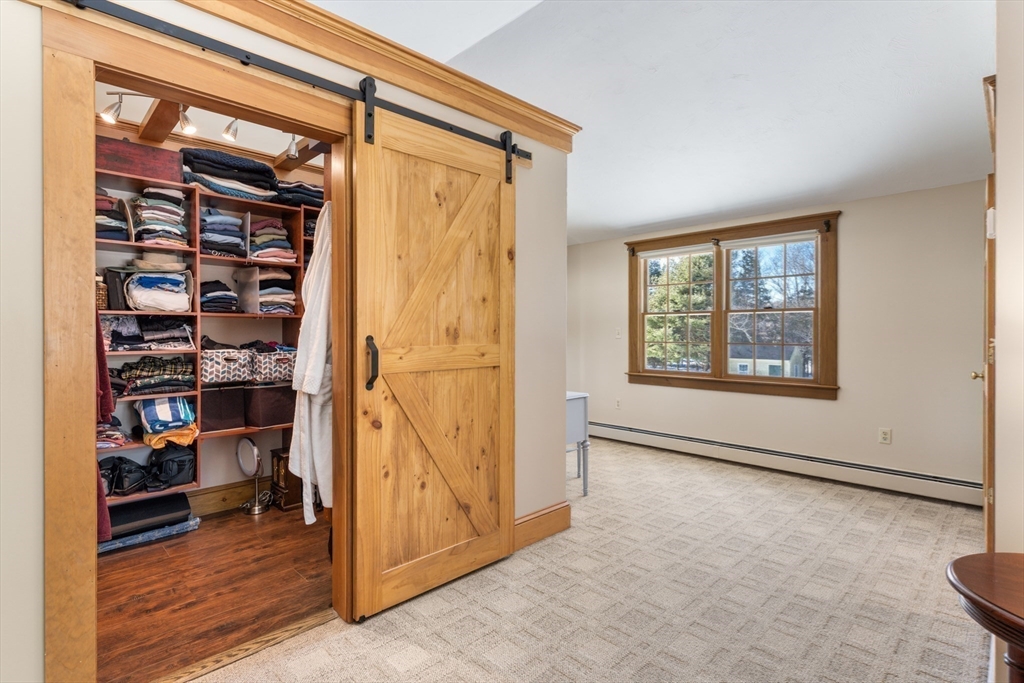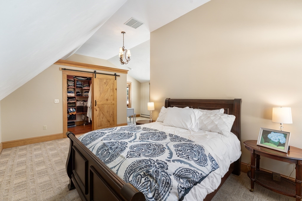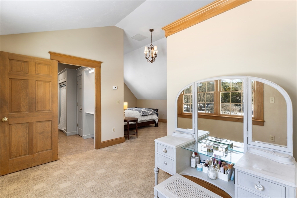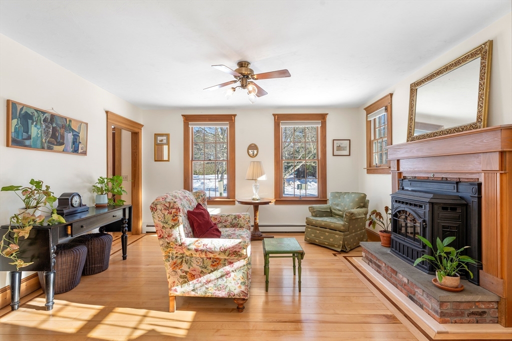 Welcome to 33 Butterfly Trail, a beautifully maintained custom Nantucket-style cape at the end of a cul de sac in one of North Dartmouth's most desirable neighborhoods. This 3-bedroom, and 2.5-home offers over 2500 sq ft and potential for a 4th bedroom (approved septic). The first floor features maple floors with walnut inlays, custom woodwork, open layout, and abundant natural light. The kitchen includes a pantry,breakfast bar, and coffee/tea station, opening to a dining area and sitting room with energy saving pellet stove. Upstairs offers new carpeting, three spacious bedrooms, a bonus room, and a primary suite with en suite bath, walk-in closet, and laundry. Set on a landscaped one-acre lot with credit-generating solar, irrigated gardens, and wraparound deck. Commuter-friendly with easy access to Route 6, I-195,and the New Bedford MBTA station providing direct rail to Boston just 7 miles from your new home.