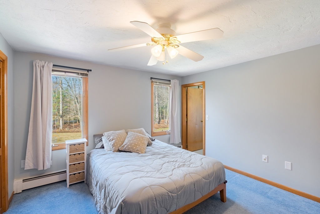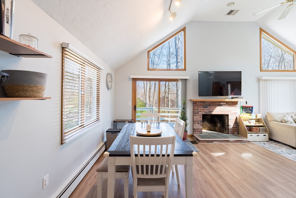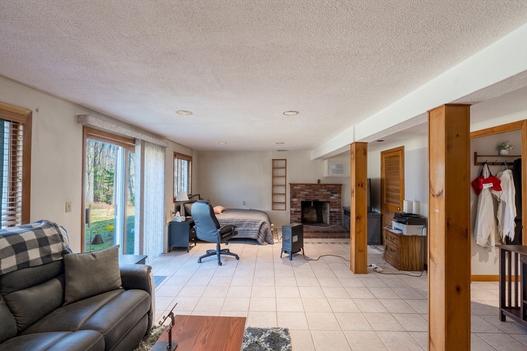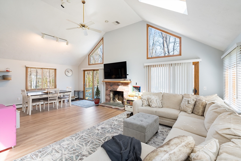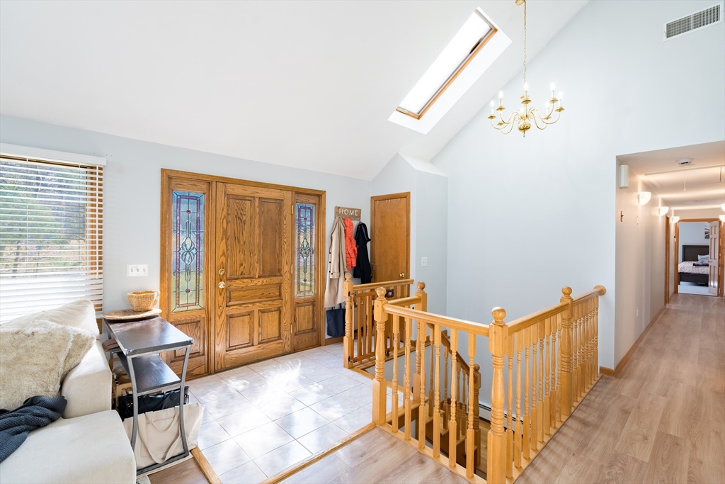 Gracing the tranquil setting of 17 Park St in Mendon, Massachusetts this single family residence, constructed in 1985, presents a distinctive opportunity for elevated living. Within its expansive over 2200 square feet of main living area, generously proportioned spaces invite a sense of comfort. The open concept living space features cathedral ceilings, large windows, newly installed premium flooring and is complete with its warm centered brick fireplace. Three thoughtfully appointed bedrooms provide peaceful sanctuaries, each designed for privacy and repose. The Primary bedrooms spans front to back with its large walk in closet, full bath with whirlpool tub and its own balcony over looking your private backyard. Another full bathroom and half bathroom accompany and complete the main floor. Further enhancing the property's appeal, a substantial four-space garage offers considerable capacity for vehicles, hobbies, or extensive storage solutions and over 1.3 acres of land.