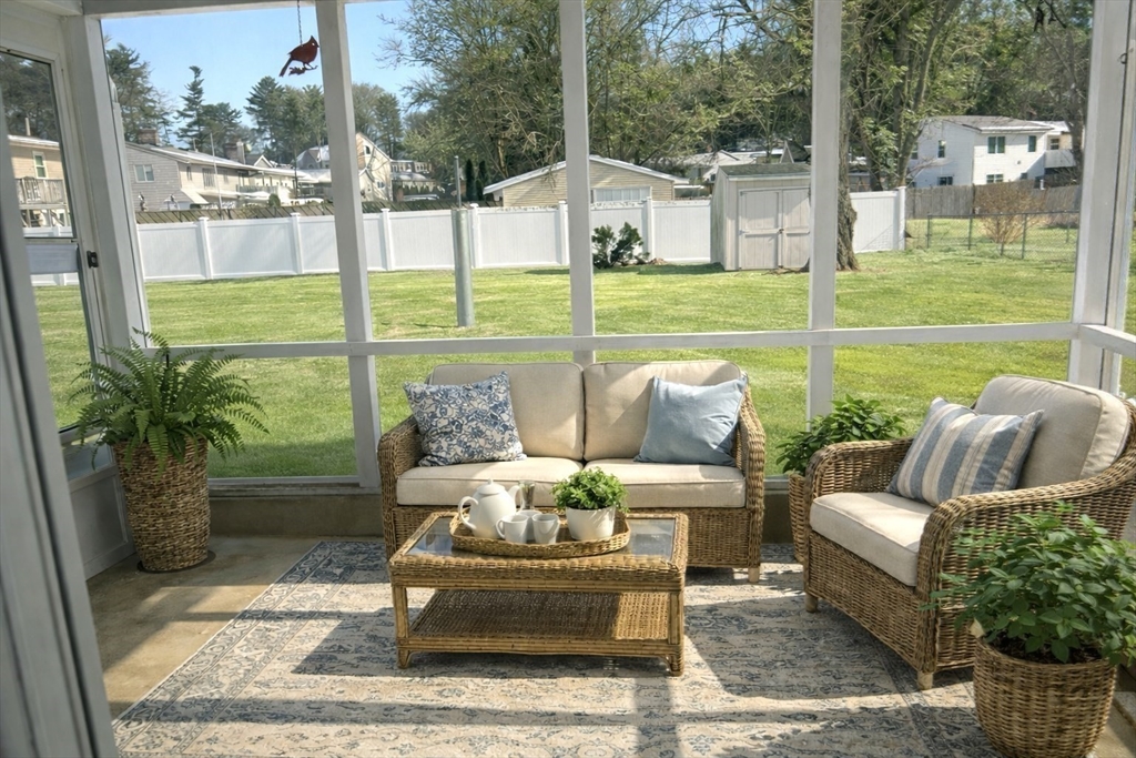 A well-maintained 3-bedroom, 1-bath home offering charm, comfort, and smart use of space. The bright, easy-flow layout features three nicely sized bedrooms and a solid, functional design throughout. The kitchen opens to a good-sized deck, perfect for outdoor dining, while the enclosed patio provides excellent bonus space for relaxing or entertaining in any season.The 1-car garage under adds convenience, and the beautiful fenced-in yard creates a great setting for play, pets, gardening, or simply enjoying the weather. Located just minutes from downtown Canton, the local train stop, and a short drive to the Village shops, this home blends everyday practicality with a truly welcoming feel.