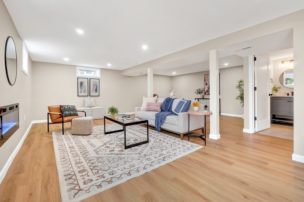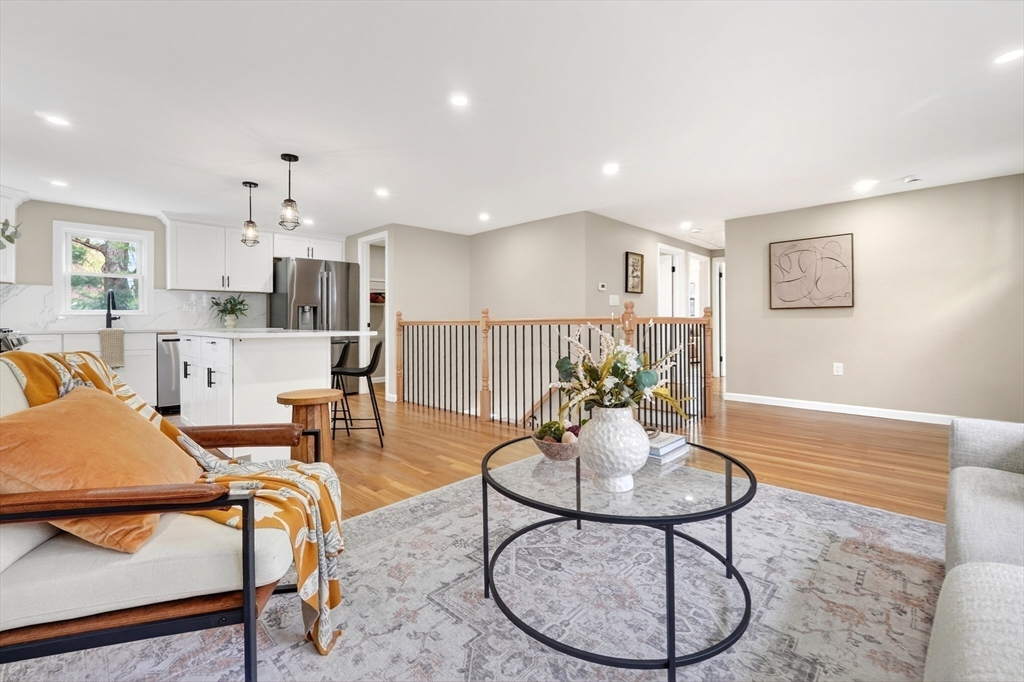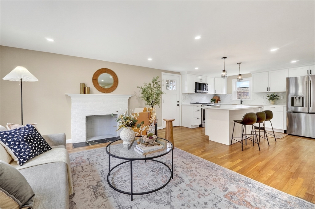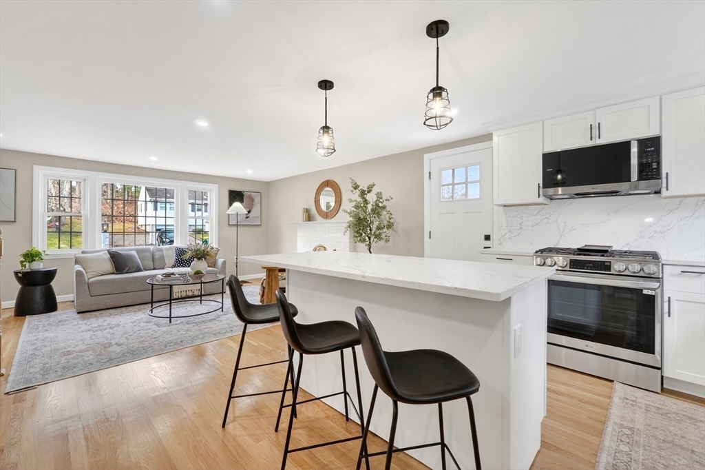 Welcome to this exceptional, fully renovated Ranch-style home where timeless design meets refined modern living.Taken down to the studs and meticulously rebuilt, this 3-bedroom, 2 full bath home offers a seamless blend of craftsmanship, quality, and thoughtful design throughout. The sun-drenched main level features an elegant open-concept layout with a sophisticated living area & designer kitchen w/high-end finishes, featuring quartz countertops and a full quartz backsplash, centered around a striking island w/seating—ideal for everyday living & entertaining. A side composite deck extends the living space, overlooking the expansive backyard.The finished lower level provides additional versatility with a spacious family room, dedicated laundry room, and sliders leading to a private patio, creating a seamless indoor-outdoor connection. Located in the highly desirable Prescott Elementary School district, recognized as a National Blue Ribbon School for academic excellence! Wow!